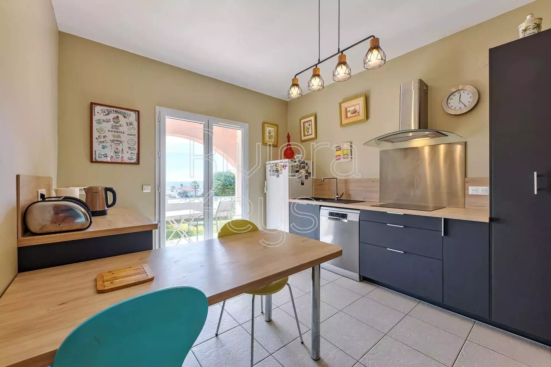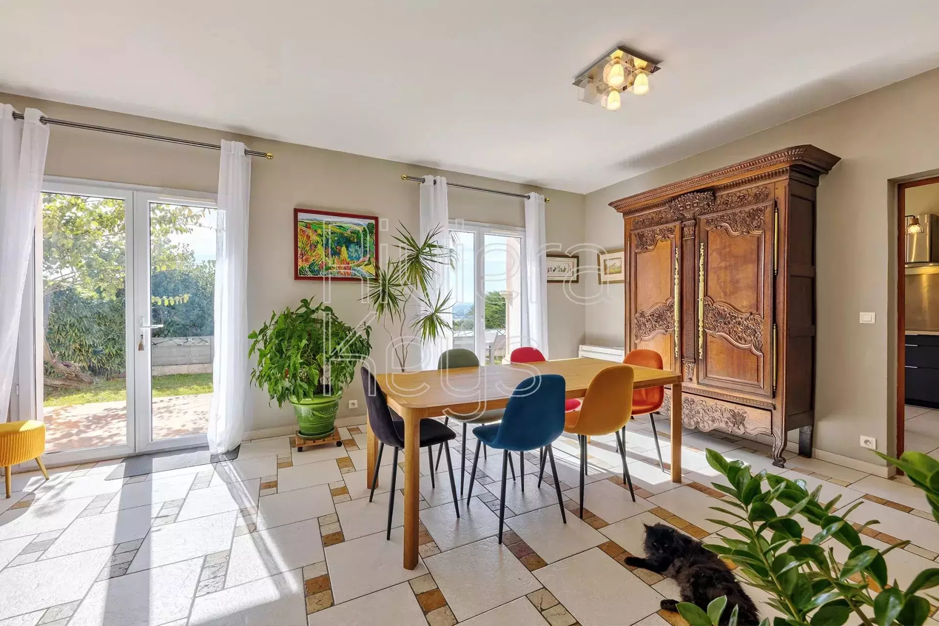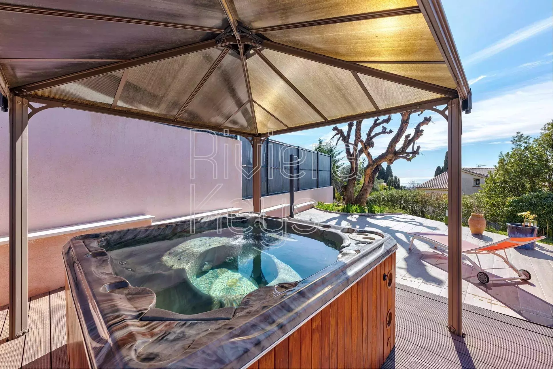 Cagnes-sur-Mer’n kukkulalla, rauhallisella alueella sijaitseva, v. 2005 rakennettu talo, jolta aukeaa kauniit näkymät merelle.