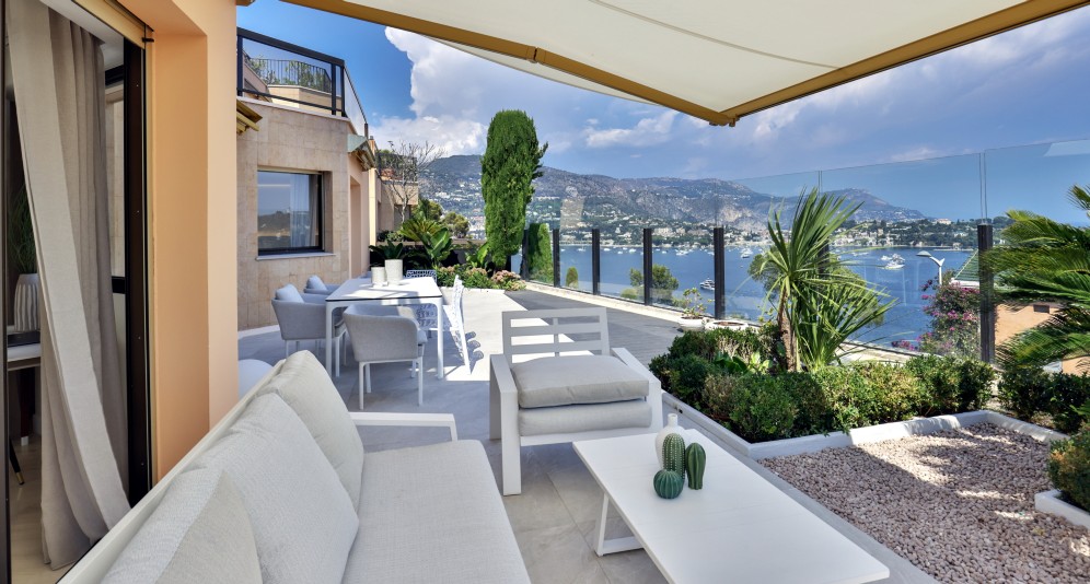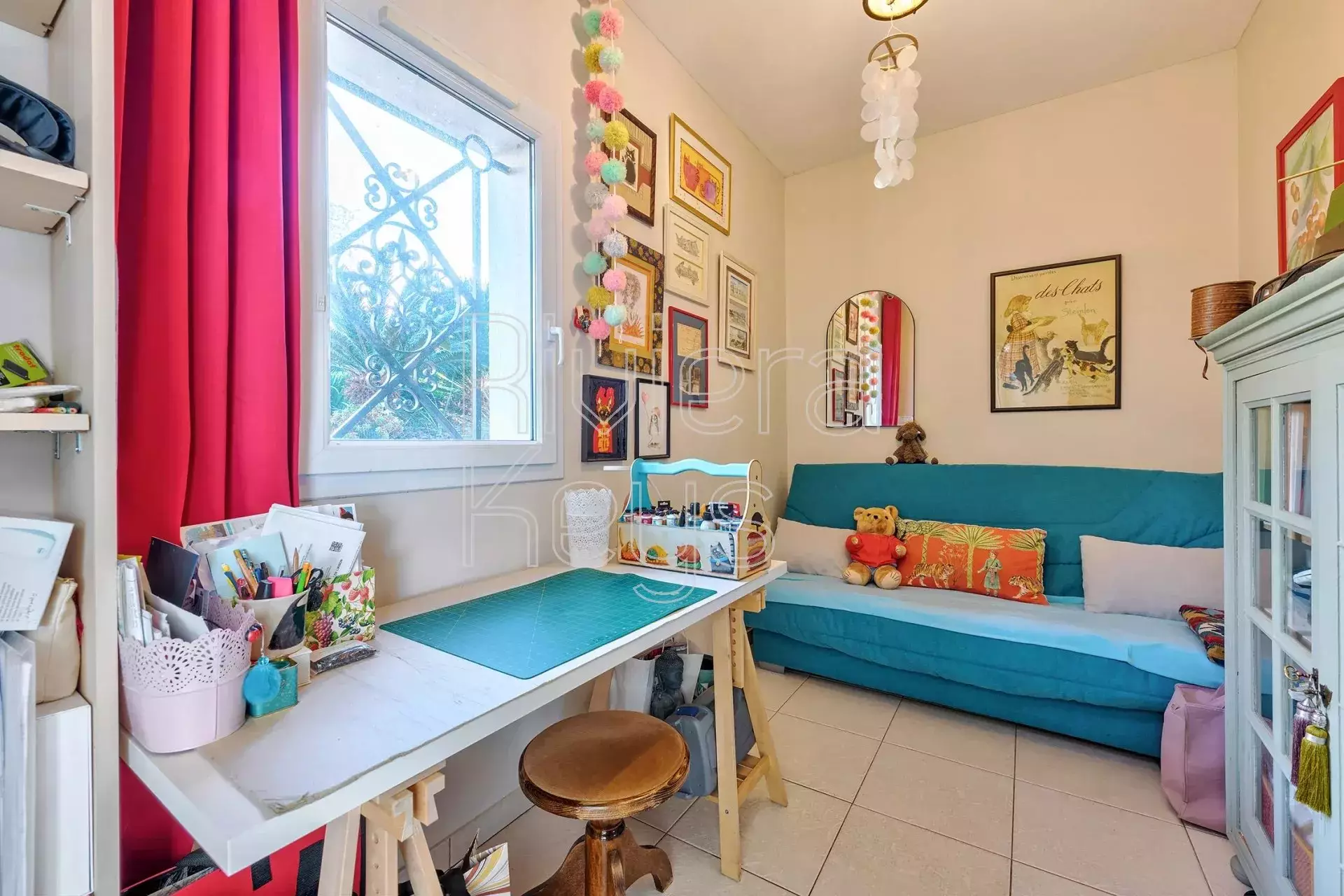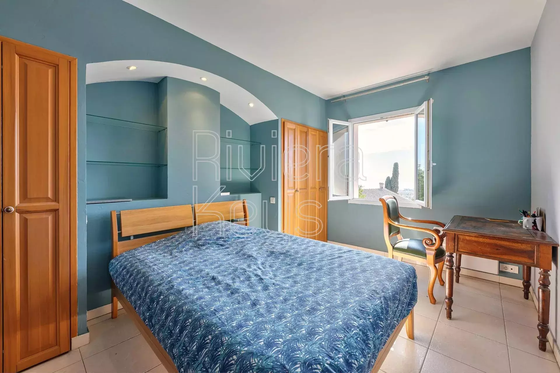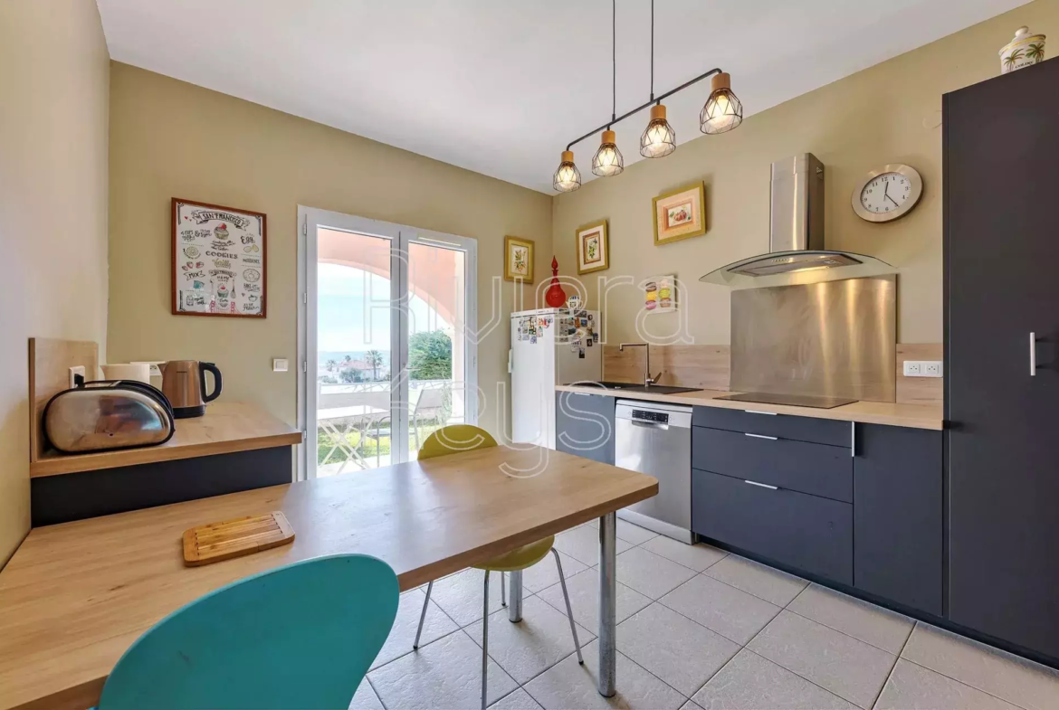 Cagnes-sur-Mer’n kukkulalla, rauhallisella alueella sijaitseva, v. 2005 rakennettu talo, jolta aukeaa kauniit näkymät merelle.