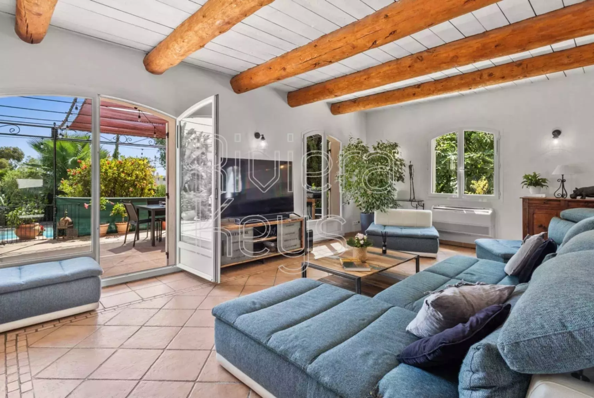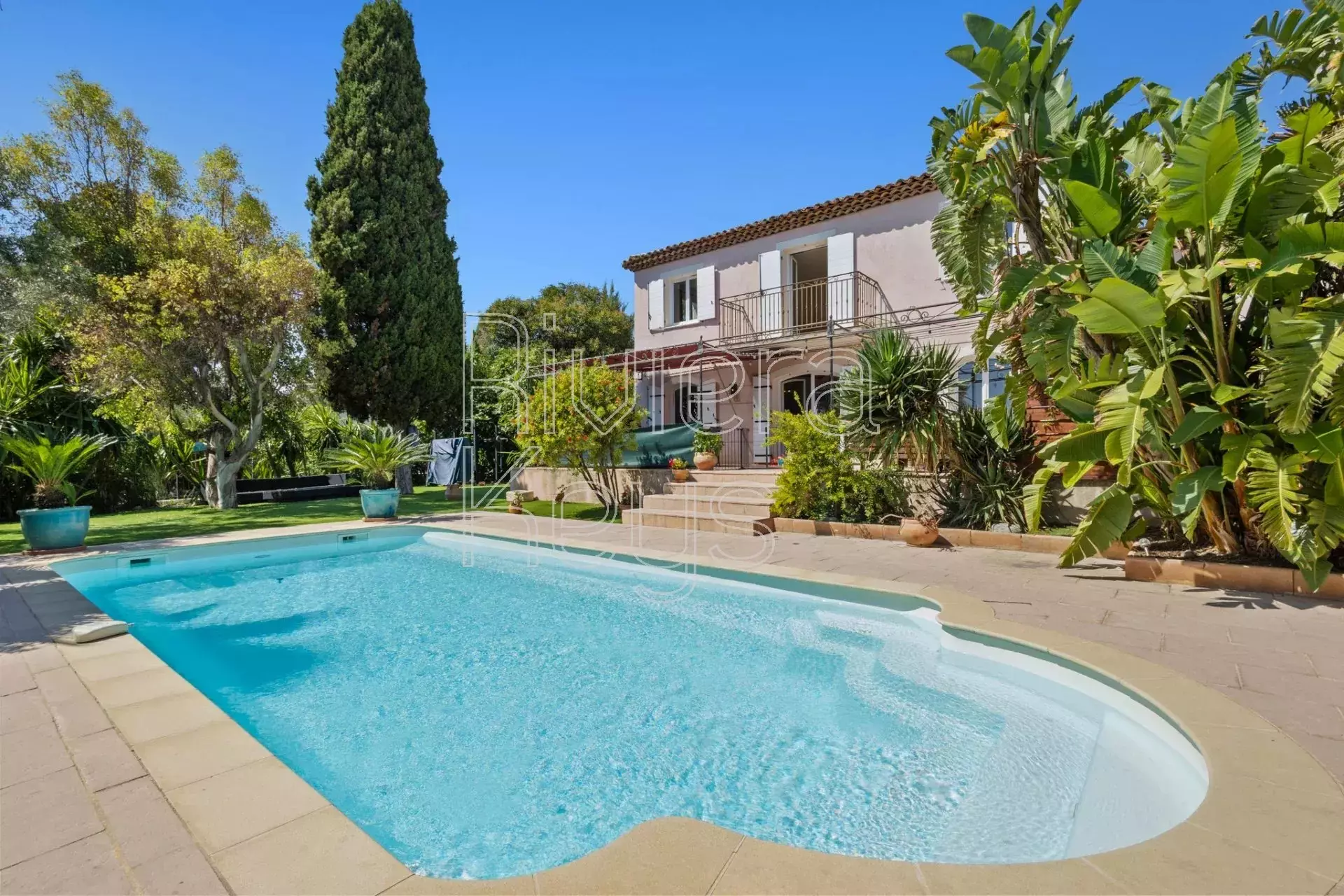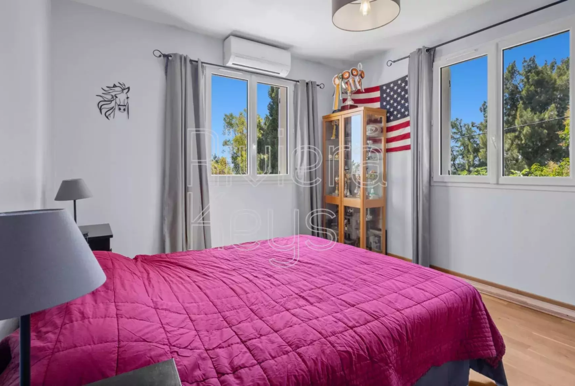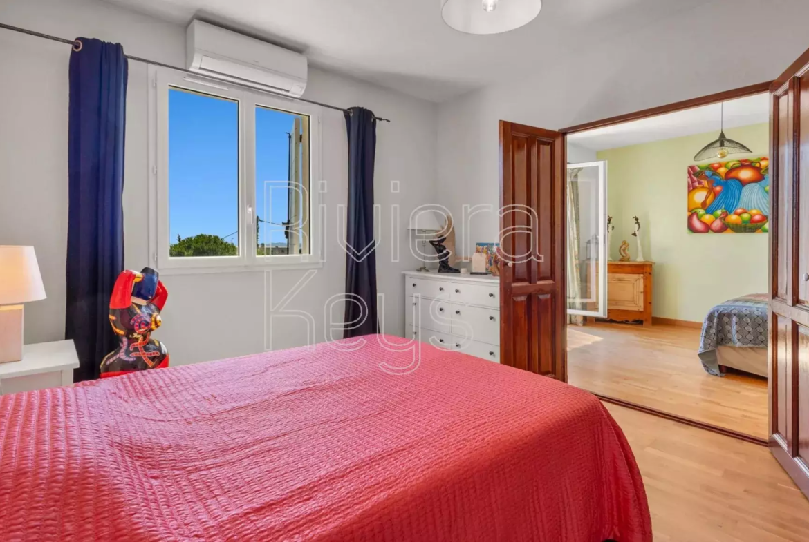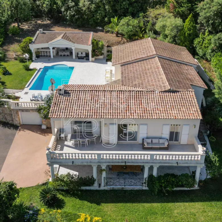Cagnes-sur-Mer’n suositulla Val Fleurin asuinalueella, päättyvän tien rauhassa sijaitseva, talo uima-altaalla ja merinäkymällä.