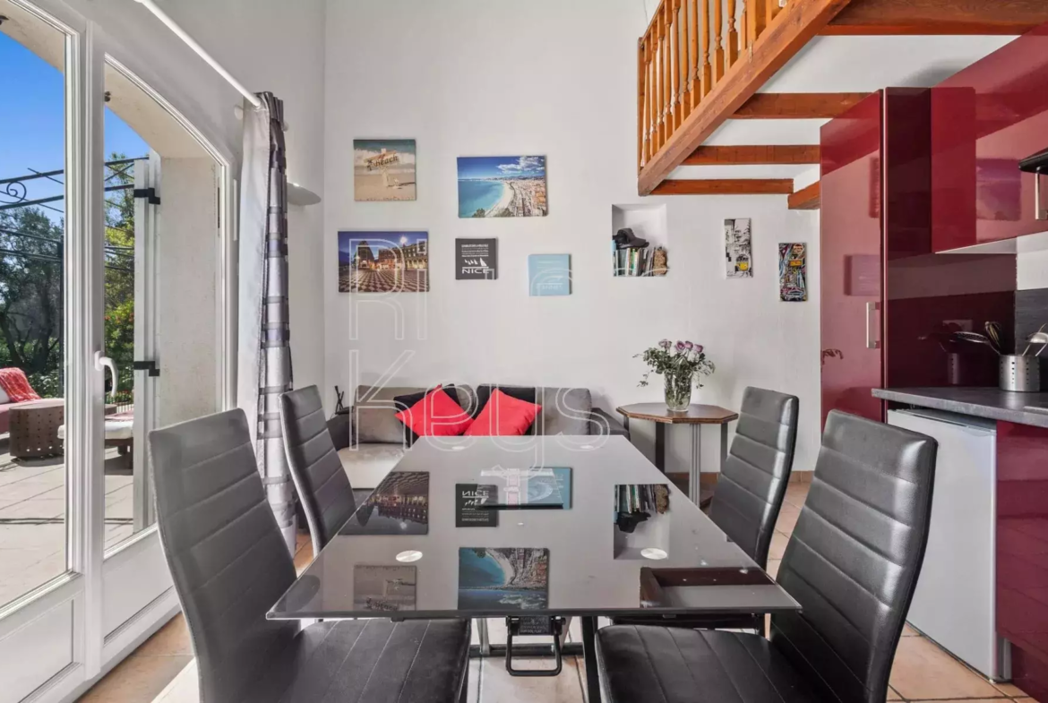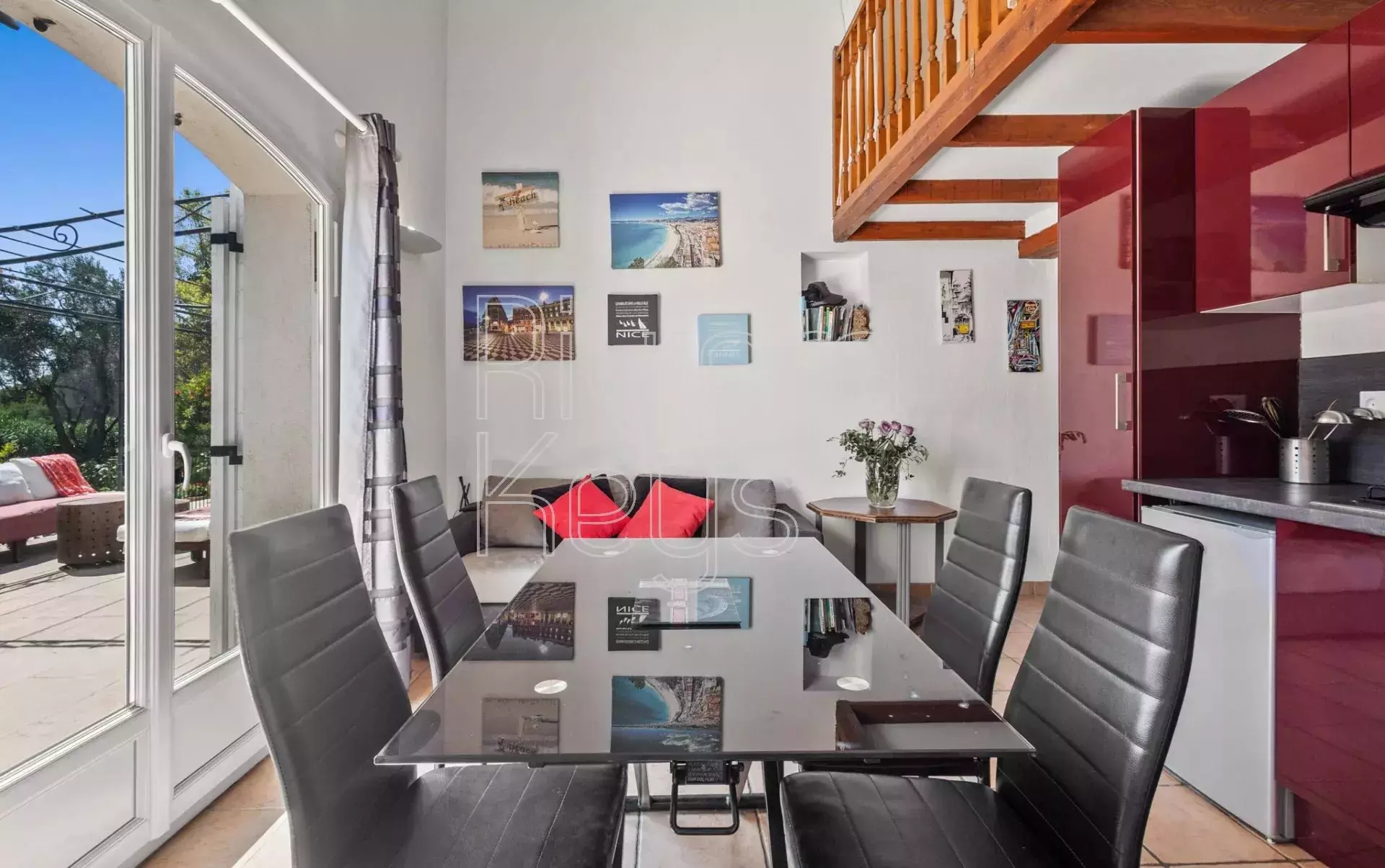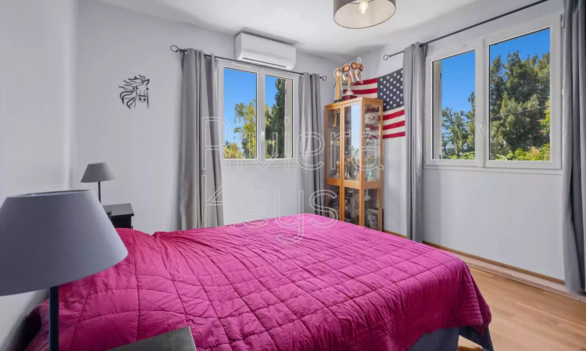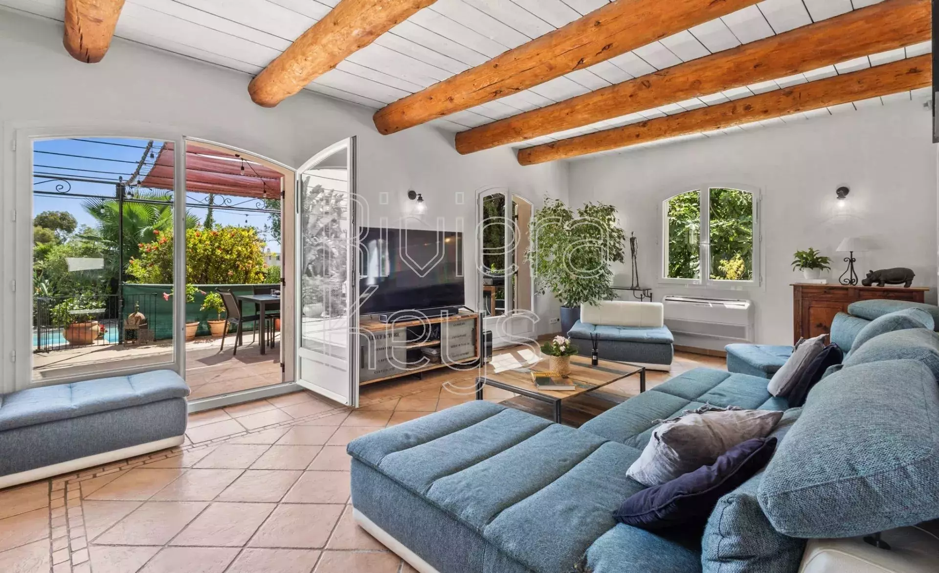 Cagnes-sur-Mer’n suositulla Val Fleurin asuinalueella, päättyvän tien rauhassa sijaitseva, talo uima-altaalla ja merinäkymällä.