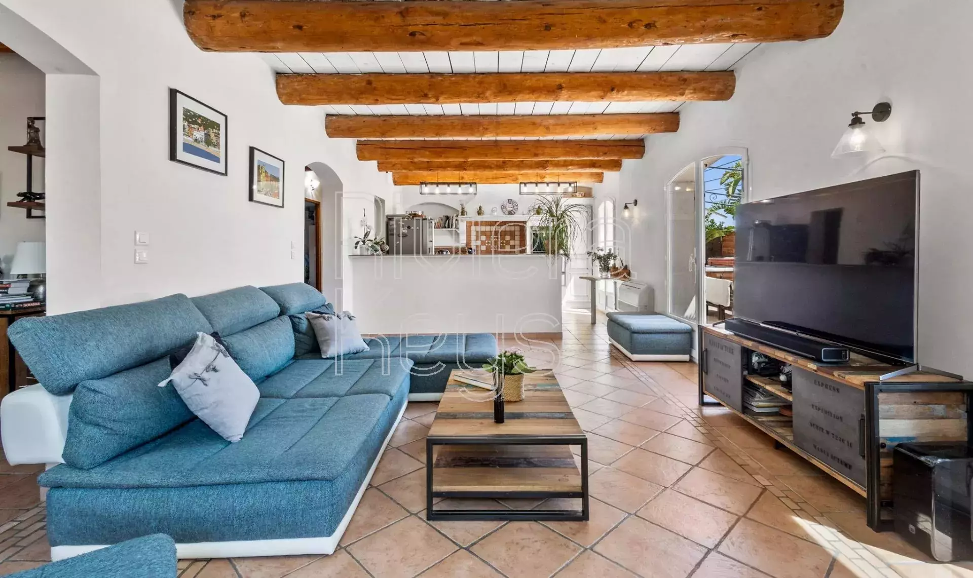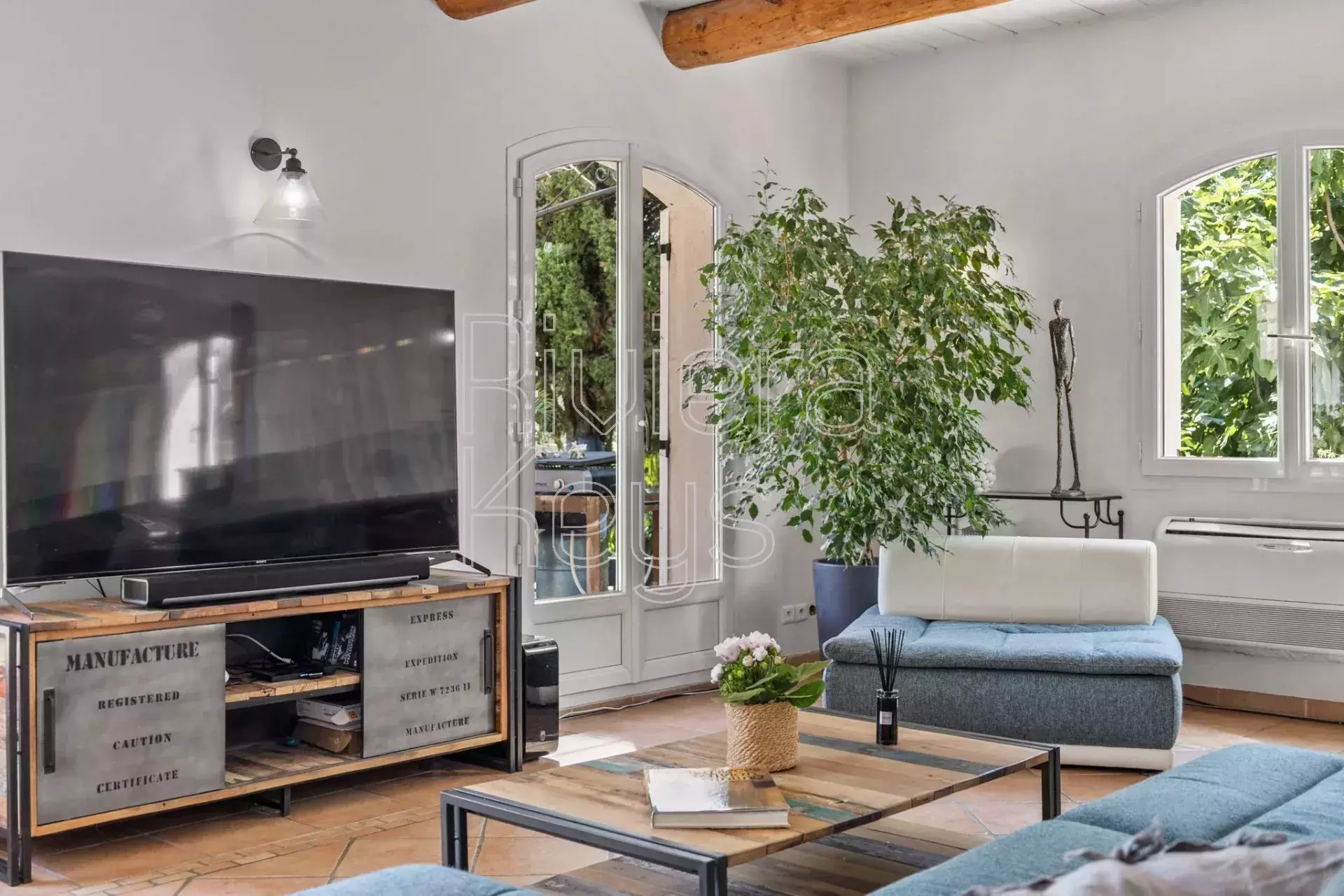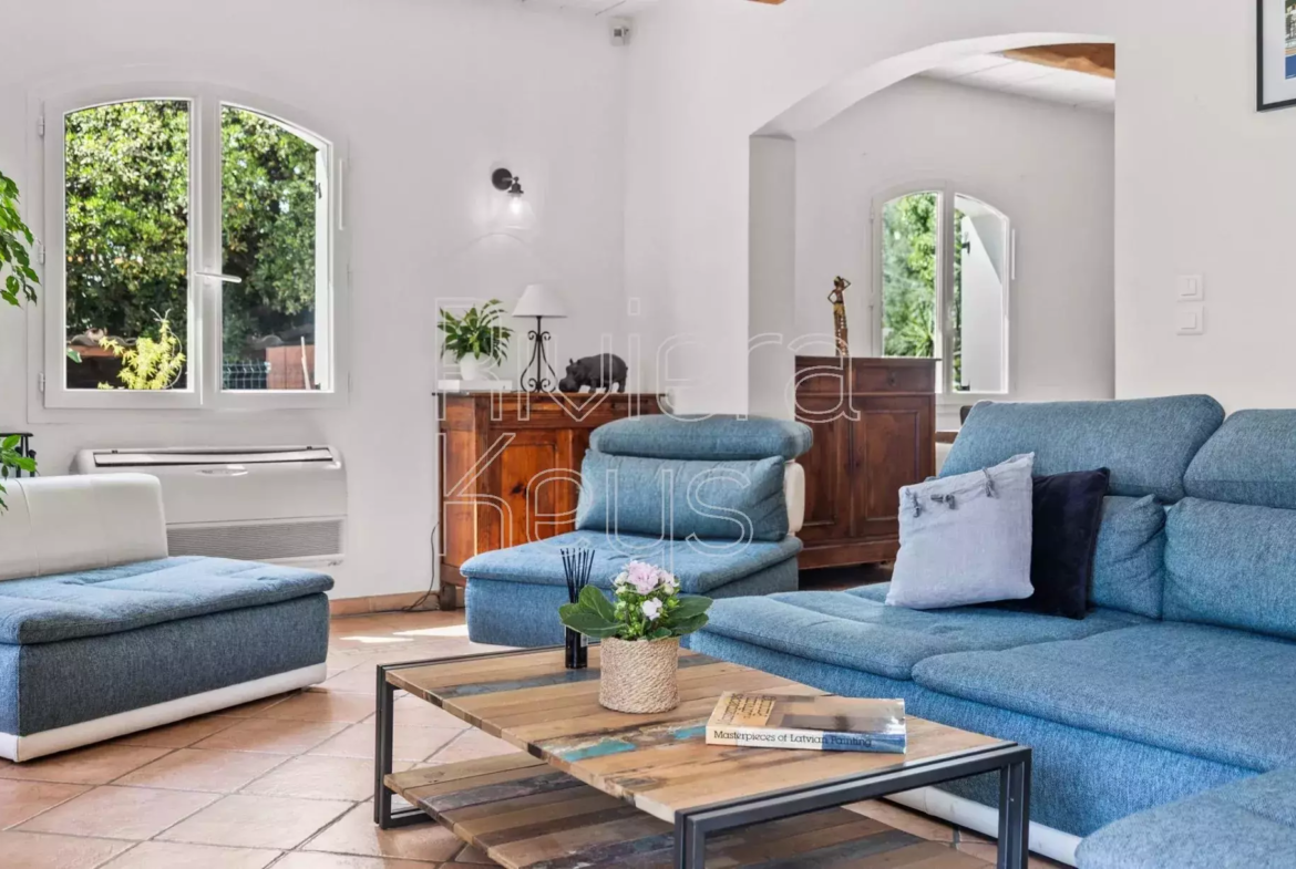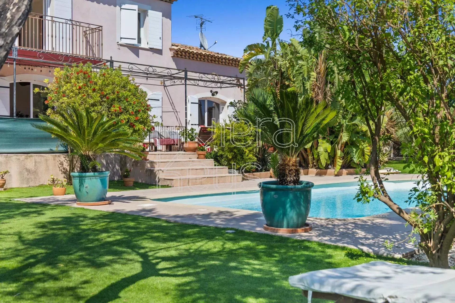 Cagnes-sur-Mer’n suositulla Val Fleurin asuinalueella, päättyvän tien rauhassa sijaitseva, talo uima-altaalla ja merinäkymällä.
