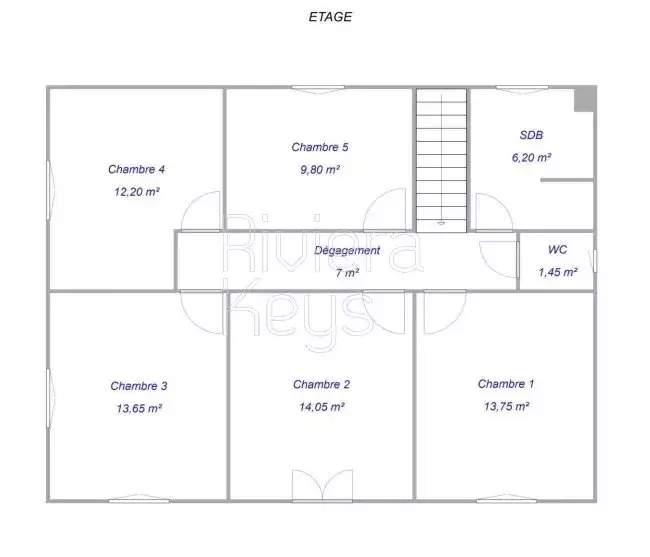 Yläkerrassa on viisi makuuhuonetta, jotka jakavat erillisen WC:n ja kylpyhuoneen. Päämakuuhuoneessa on parveke merinäköalalla.