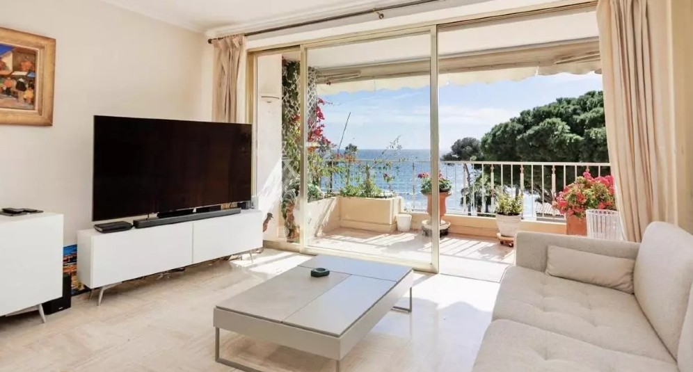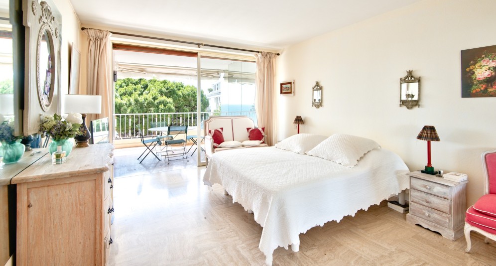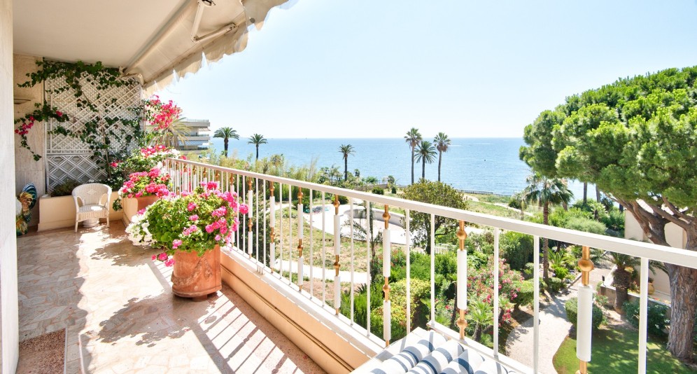 Cannesin Palm Beachin niemellä sijaitseva läpitalon asunto korkeatasoisessa taloyhtiössä, jolta suora kulku rantakadulle.