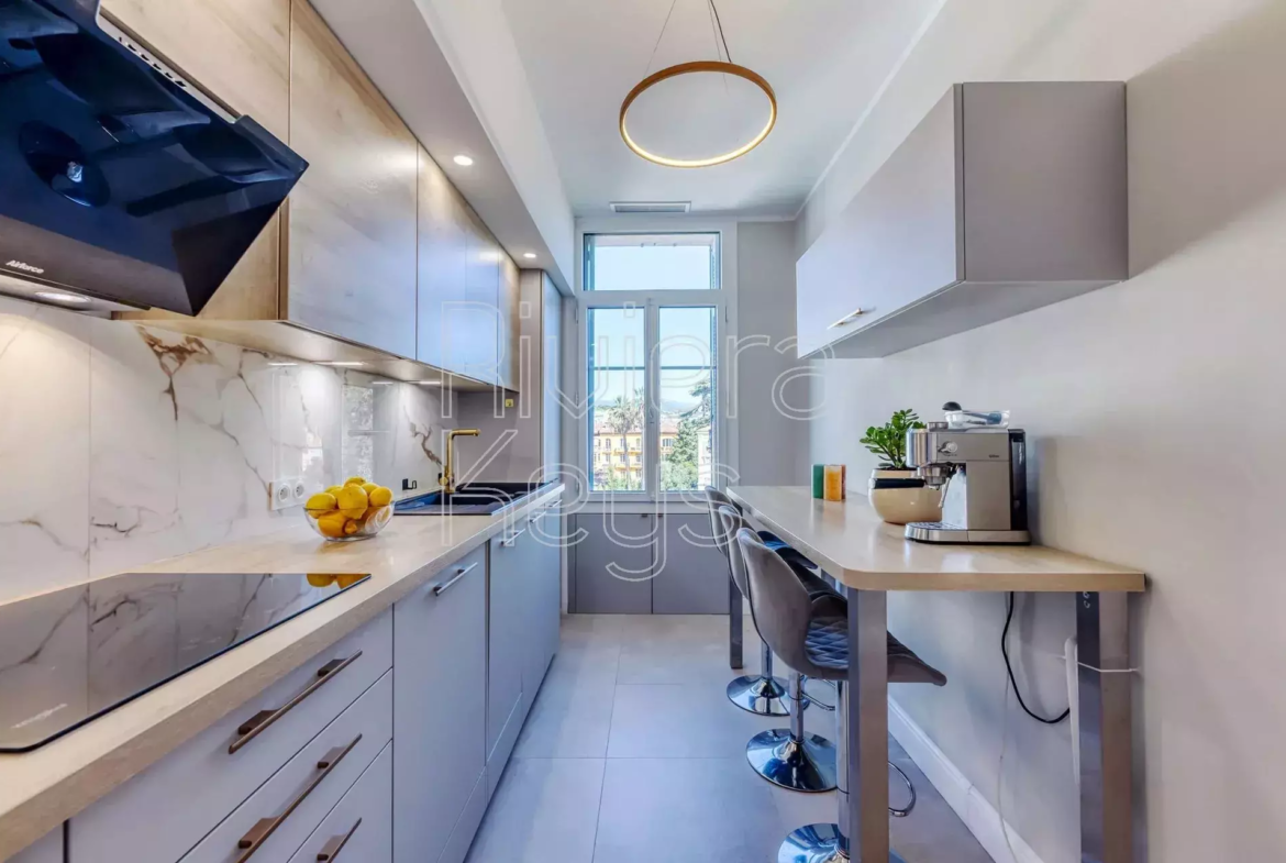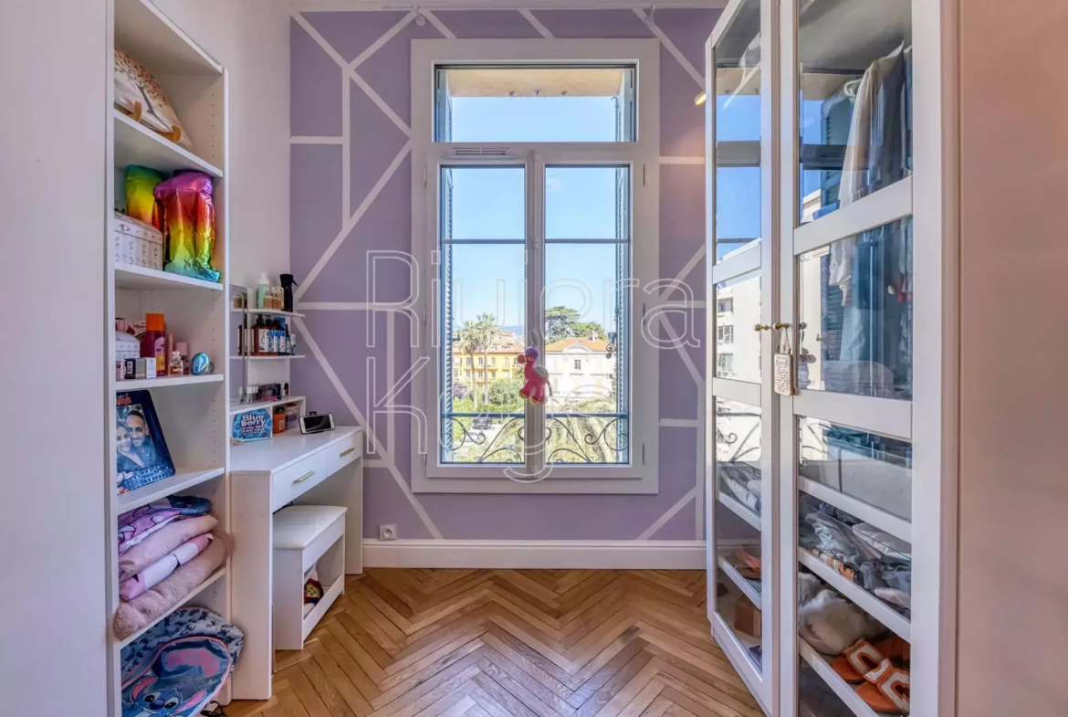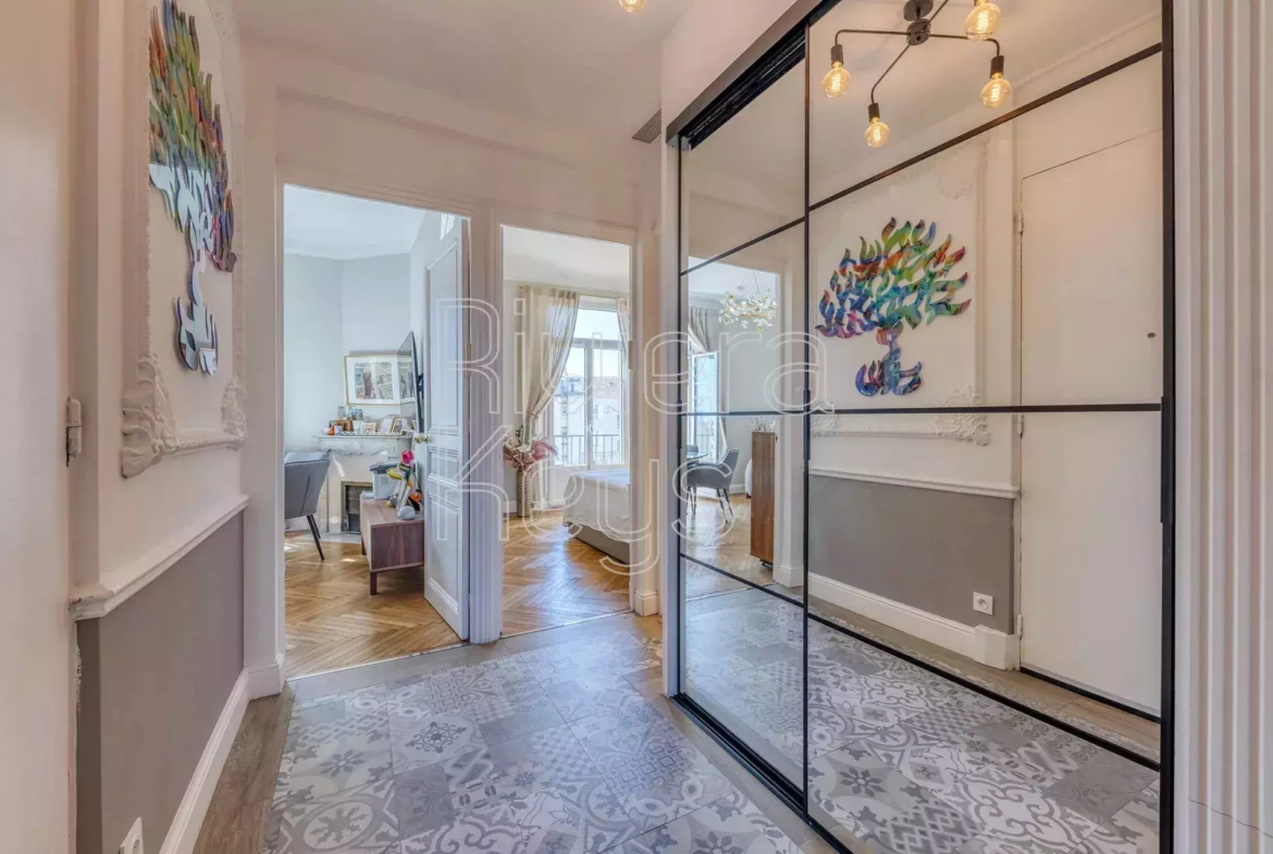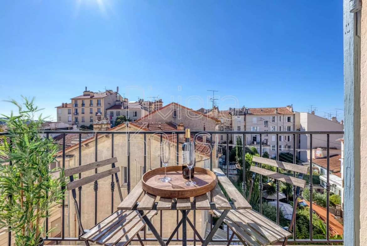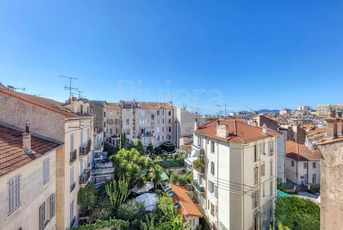 Cannesin keskustassa sijaitseva, tunnelmallinen ja remontoitu bourgeois-tyylinen läpitalon asunto, jolta avoimet näkymät.