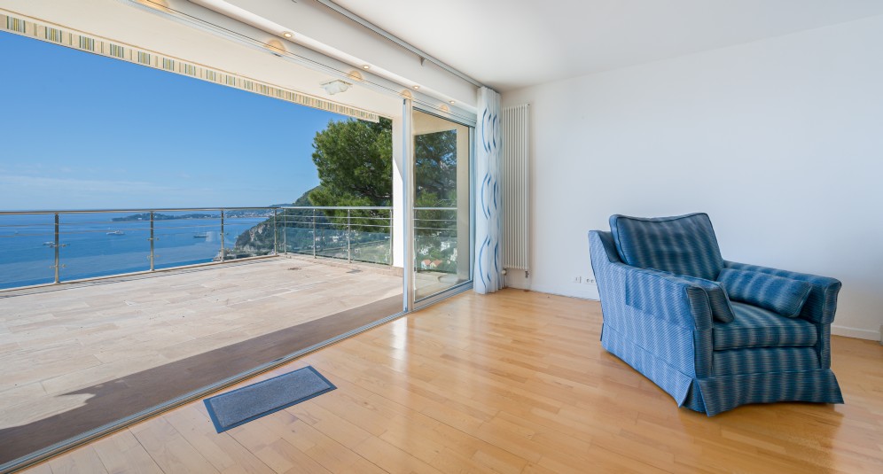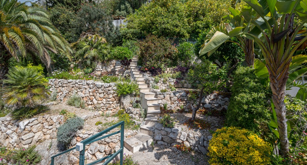 Asunnossa on valoisa olohuone, erillinen keittiö, neljä makuuhuonetta, kolme kylpyhuonetta ja kolme wc:tä. Useita terasseja ja puutarha.