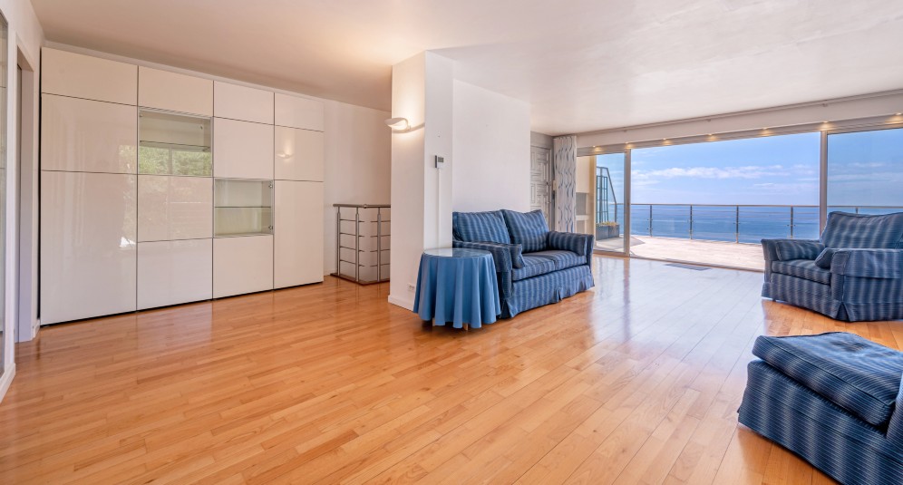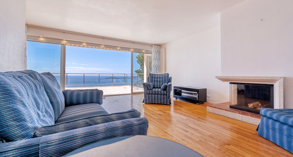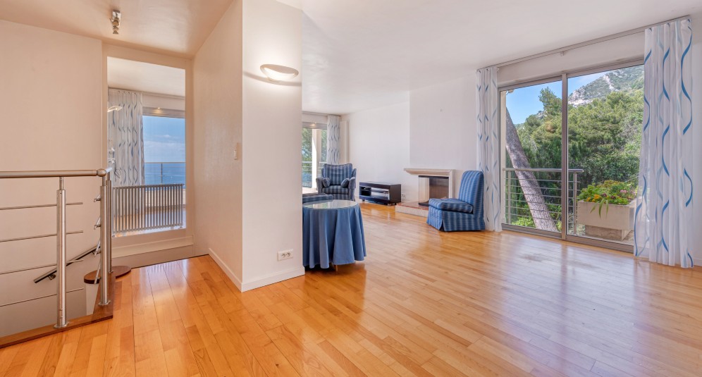 Ezen maisemarinteellä, rauhallisen tien varrella sijaitseva kolmikerroksinen paritaloasunto, jolta aukeaa huikeat panoraamanäkymät merelle.