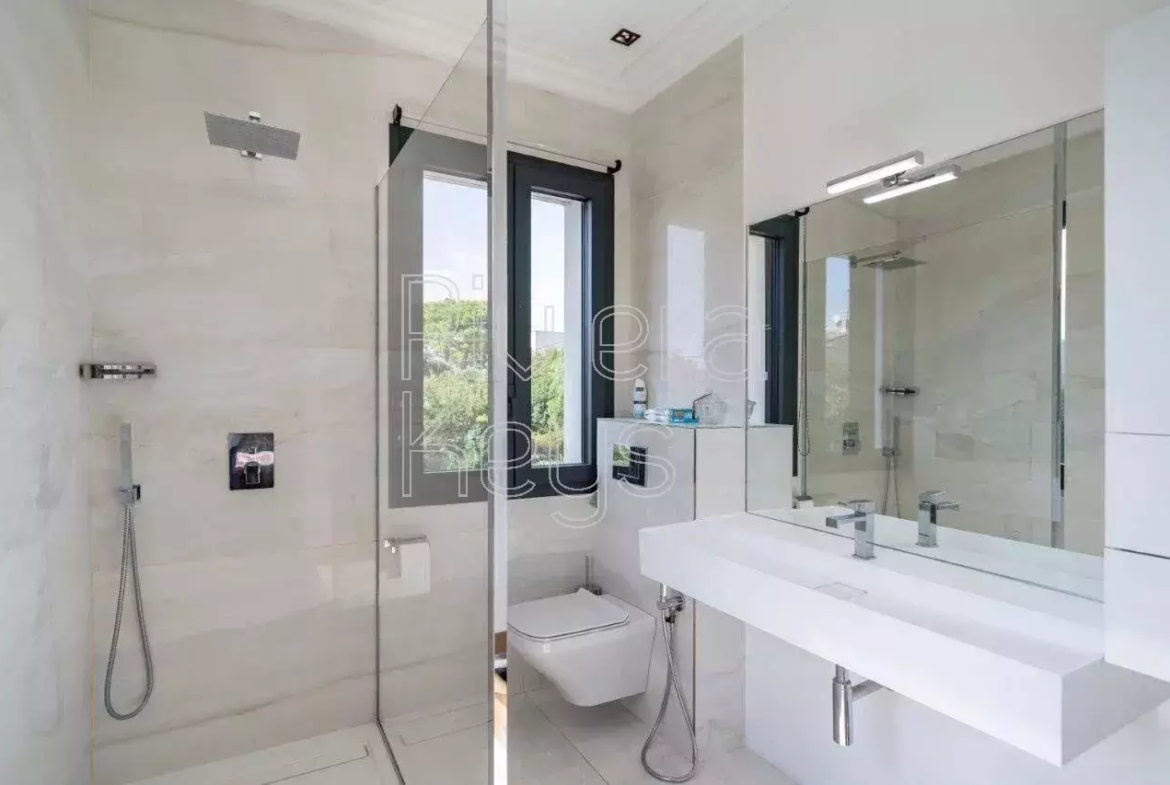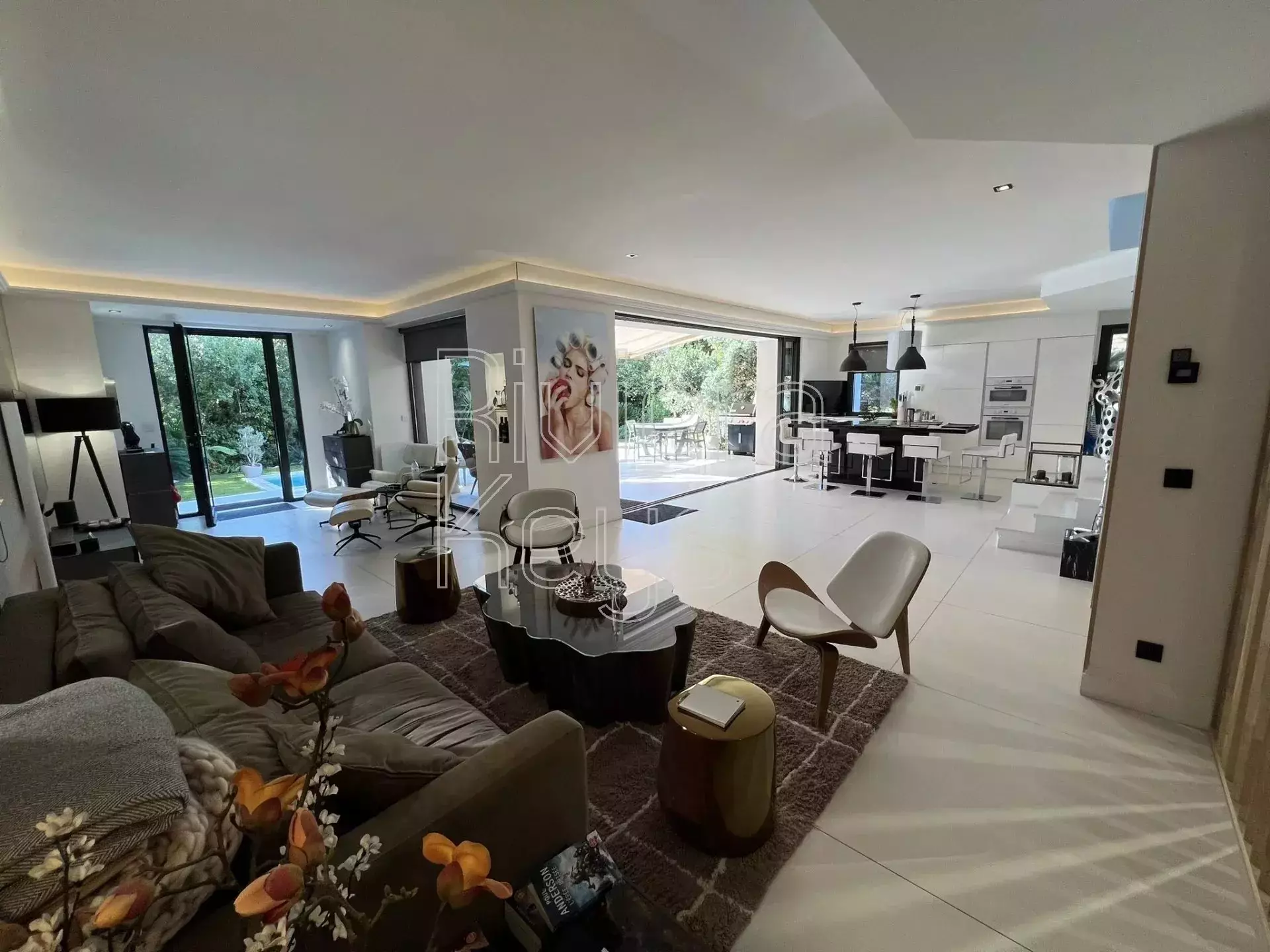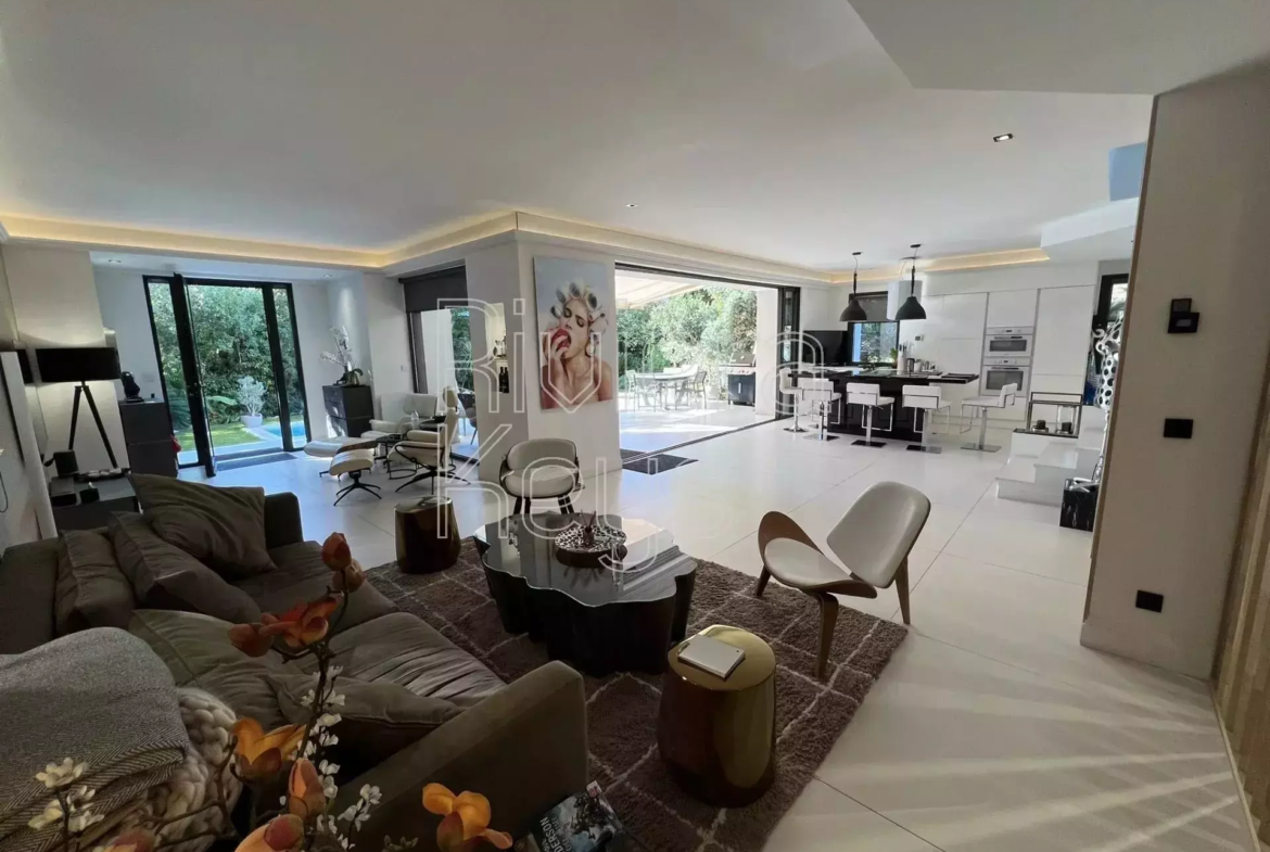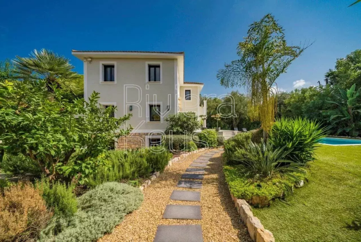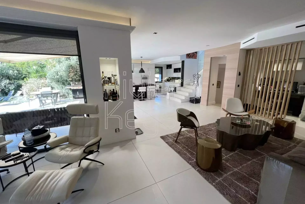 Juan-les-Pins’ssä, rauhallisessa ja suljetussa domainessa sijaitseva, upea erillistalo eteläisellä tontilla ja uima-altaalla.