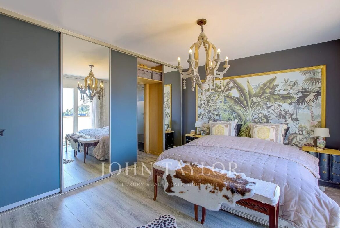 Mougins’n halutulla asuinalueella, lähellä Le Cannet’a sijaitseva, täysin remontoitu huvila, jolta aukeaa kauniit panoraamanäkymät merelle ja Estérelin kukkuloille.