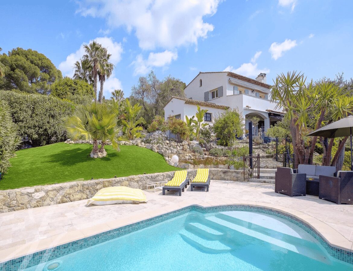 Mougins’n arvostetulla asuinalueella, lähellä Le Cannet’a ja Cannesia sijaitseva, täysin remontoitu talo, jolta aukeaa panoraamanäkymät merelle ja kukkuloille.