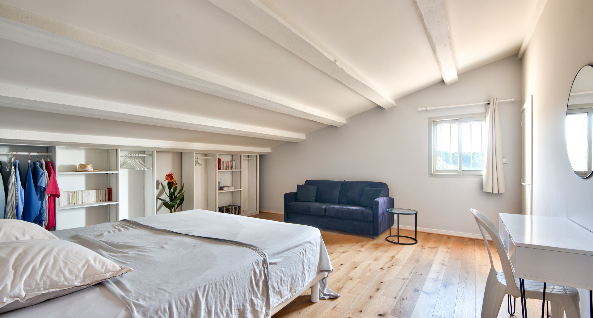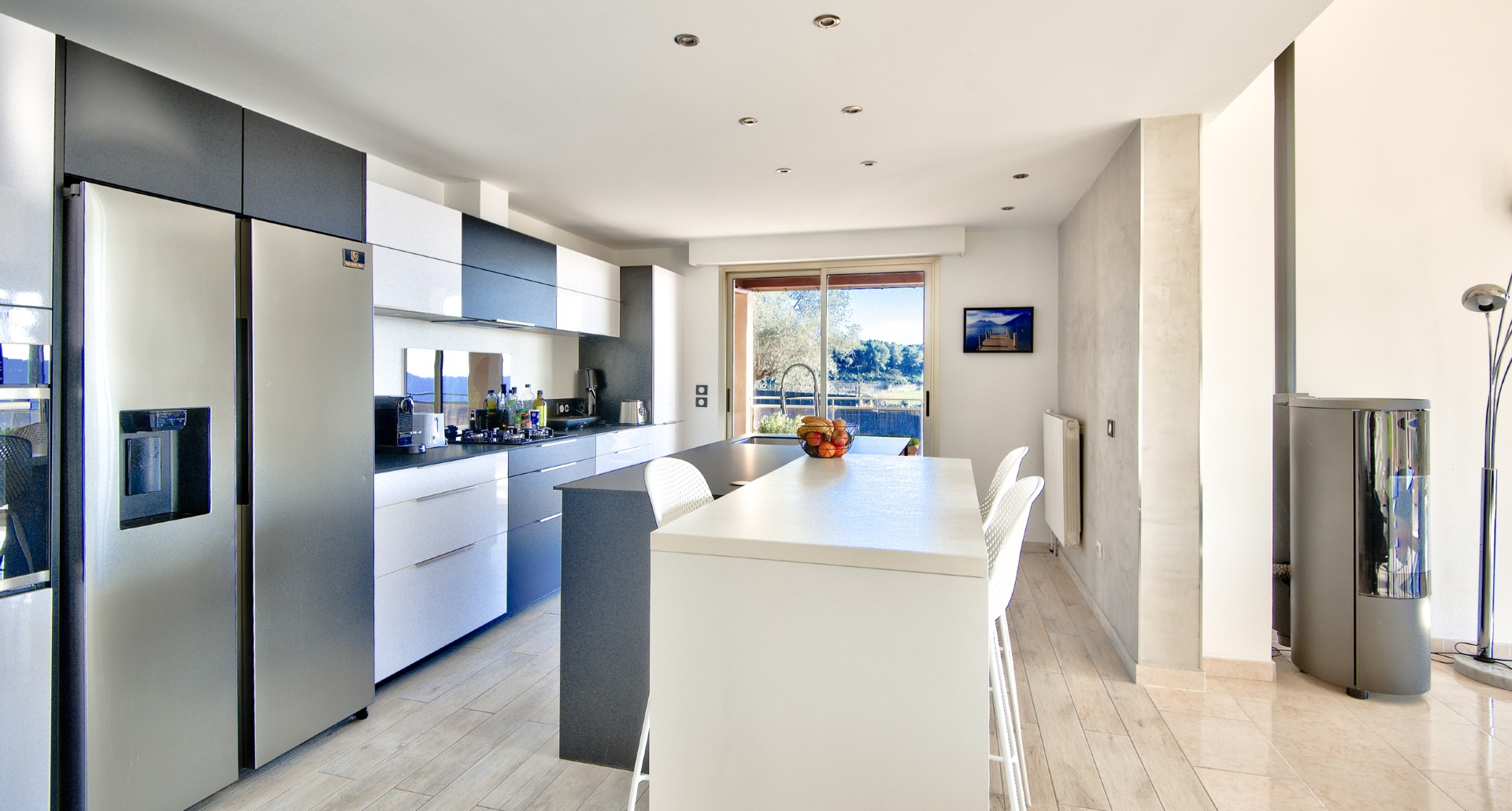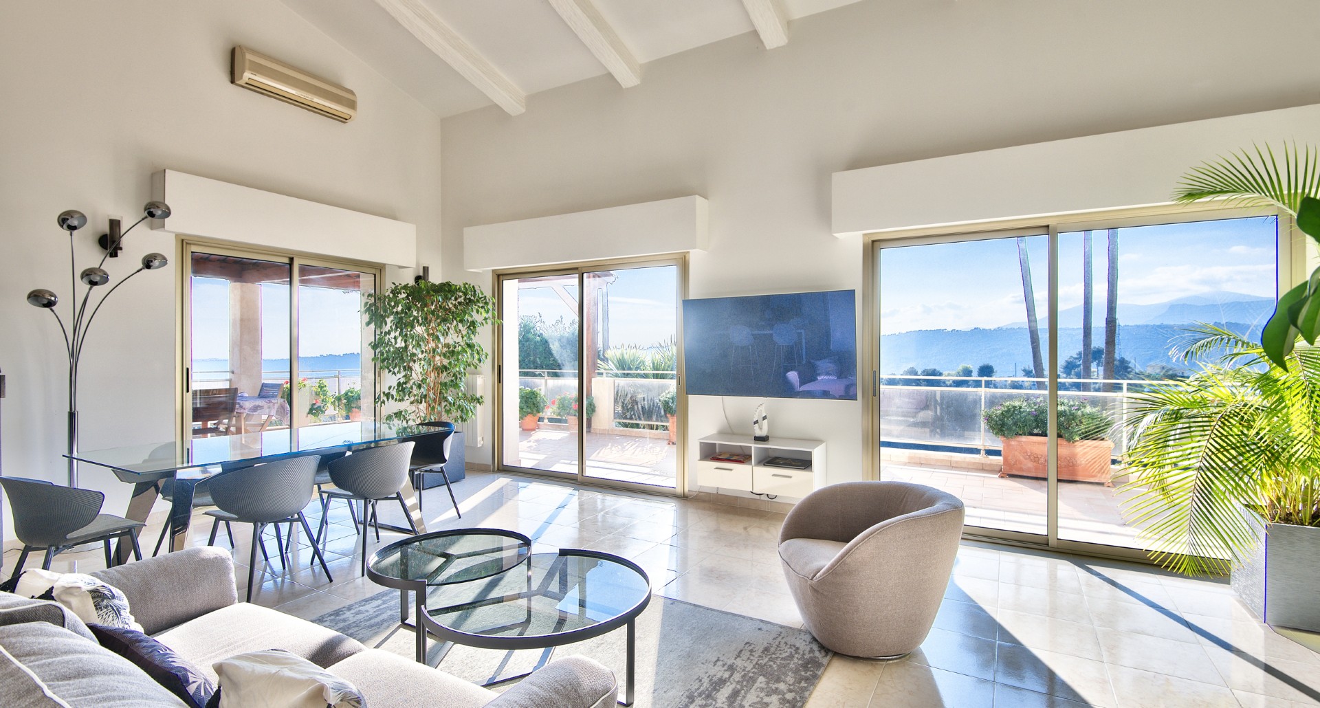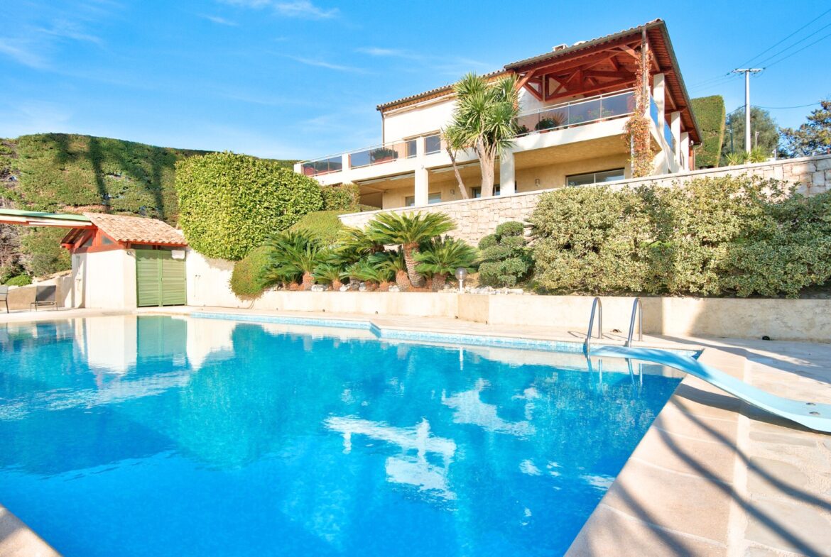 Nizzan Cremat’n kukkualla, rauhallisella ja vehreällä alueella sijaitseva kahdesta erillisestä asunnosta muodostuva talo, jolta aukeaa avoimet näkymät kukkuloille ja Cap d’Antibesiin saakka.