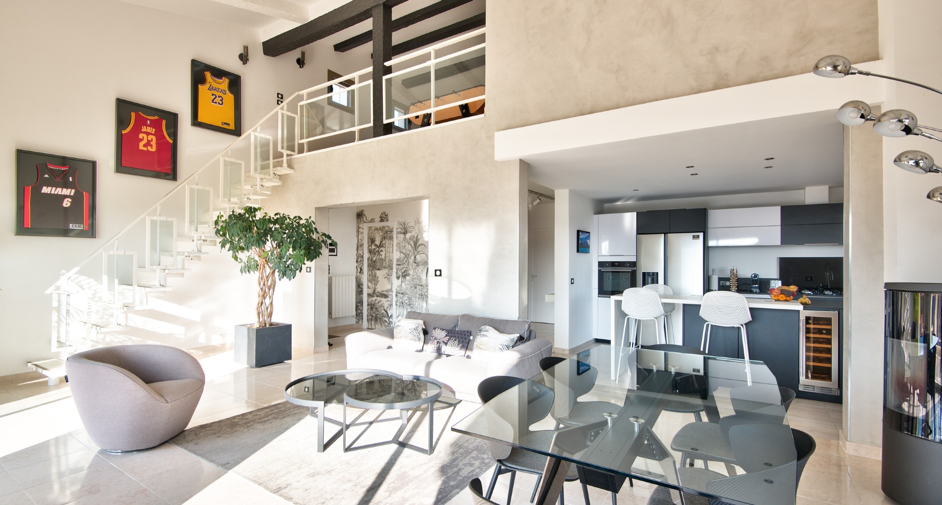 Talon kaksi asuntoa ovat 120 m2 ja 180 m2, ja ne voi helposti yhdistää toisiinsa. Toisessa asunnoista on korkea olohuone, jossa puoliavoin keittiö, parvi, kolme makuuhuonetta ja kaksi kylpyhuonetta. Toisessa asunnossa on tilava olohuone, keittiö, kaksi makuuhuonetta ja kylpyhuone. Talo on erittäin hyvin pidetty ja rakennuslupaa on jäljellä.