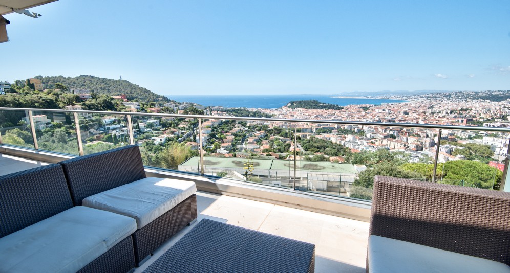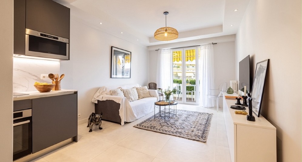 Nizzan keskustan arvostetuimmalla Carré d’Or’n alueella, halutun taloyhtiön toiseksi ylimmässä kerroksessa sijaitseva läpitalon asunto, joka on erinomaisessa kunnossa.