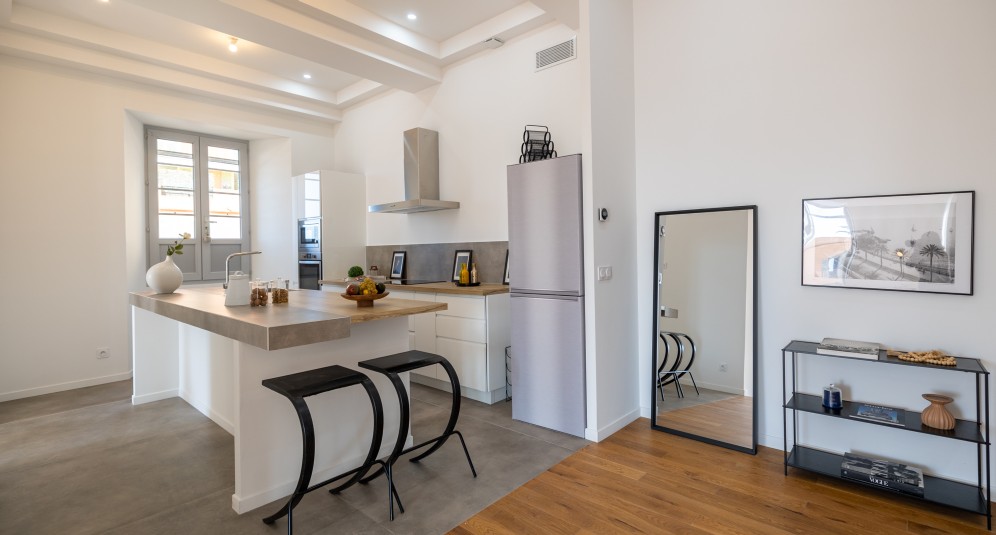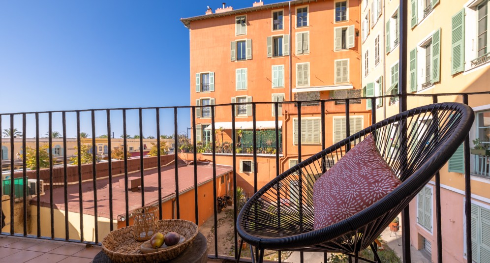 Nizzan vanhassa kaupungissa, kuuluisan Cours Saleya -kukkaistorin laidalla sijaitseva, remontoitu asunto, jolla on tälle alueelle harvinainen terassi.