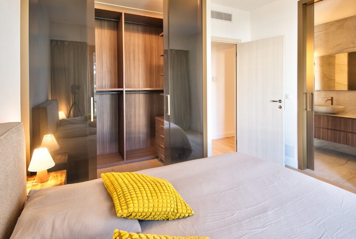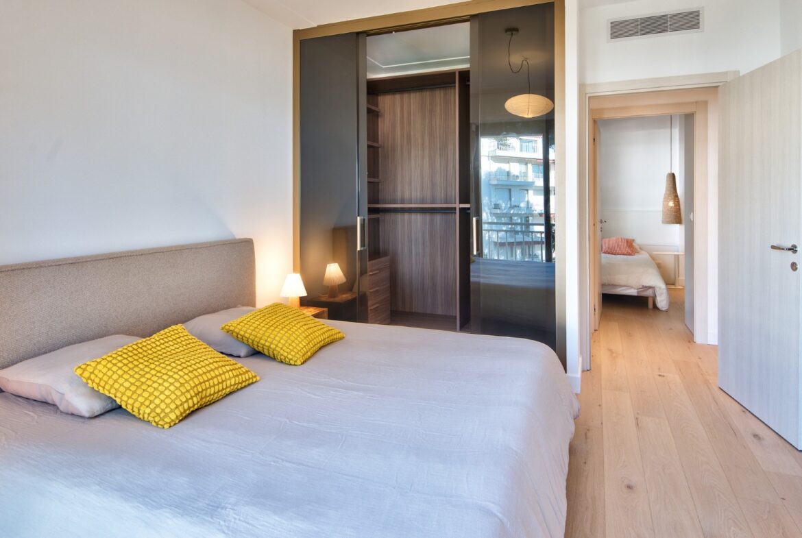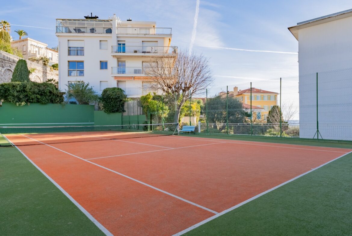 Asunnossa on valoisa olohuone, puoliavoin keittiö, kaksi makuuhuonetta, joissa kummassakin on oma kylpyhuone sekä erillinen wc. Olohuoneesta on käynti aurinkoiselle terassille. Olohuoneesta ja keittiöstä on näkymät merelle kahteen suuntaan ja postikorttimaisema satamaan ja Nizzan kuuluisalle rantakadulle. Taloyhtiössä on uima-allas, tenniskenttä ja talonmies. Asuntoon kuuluu ulkoparkkipaikka.