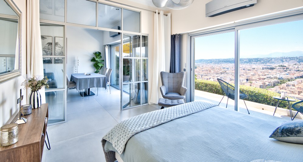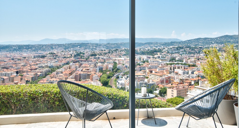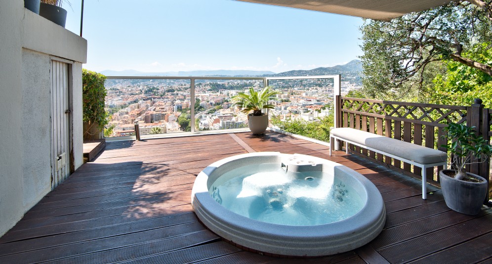 Nizzan Mont-Boron-kukkulalla, hyvätasoisessa taloyhtiössä sijaitseva asunto, jolla upeat näkymät, suuri terassi ja jacuzzi.