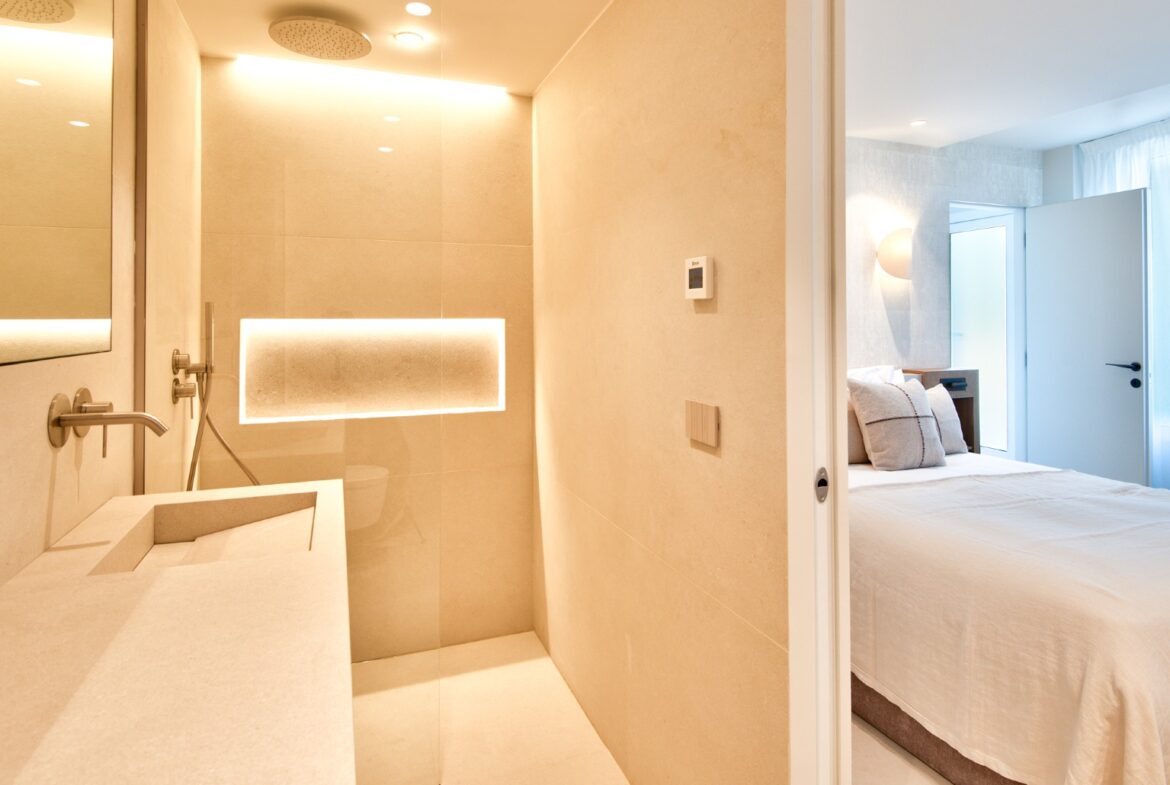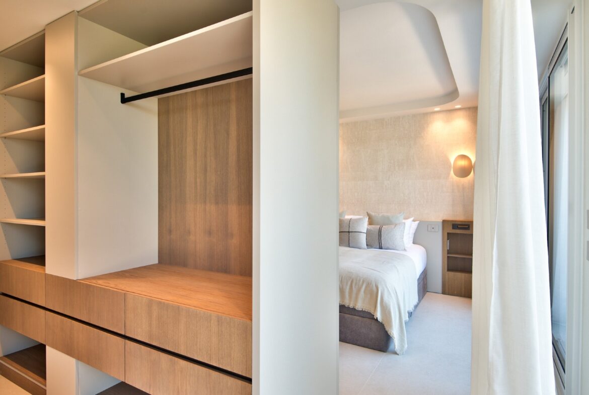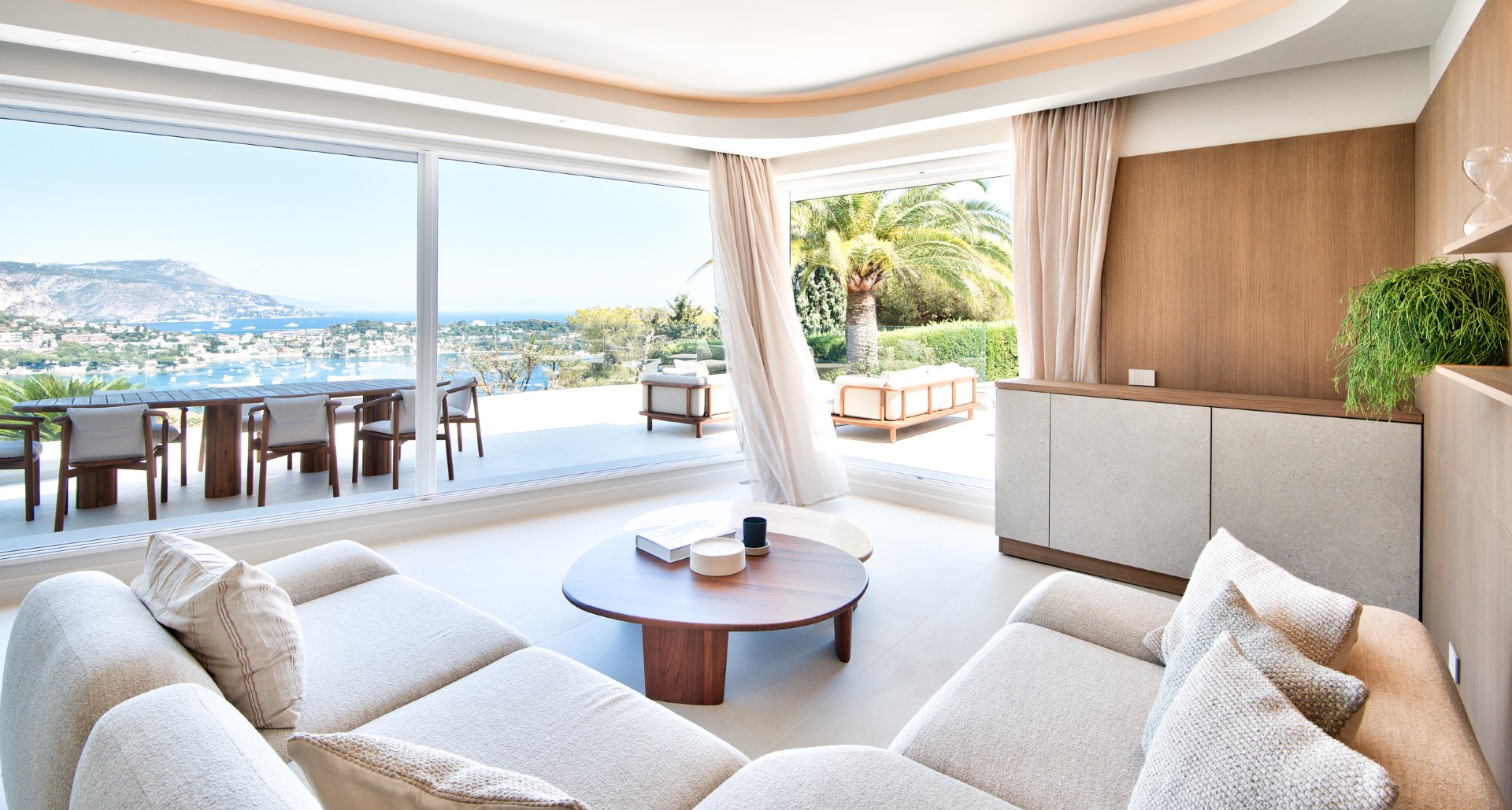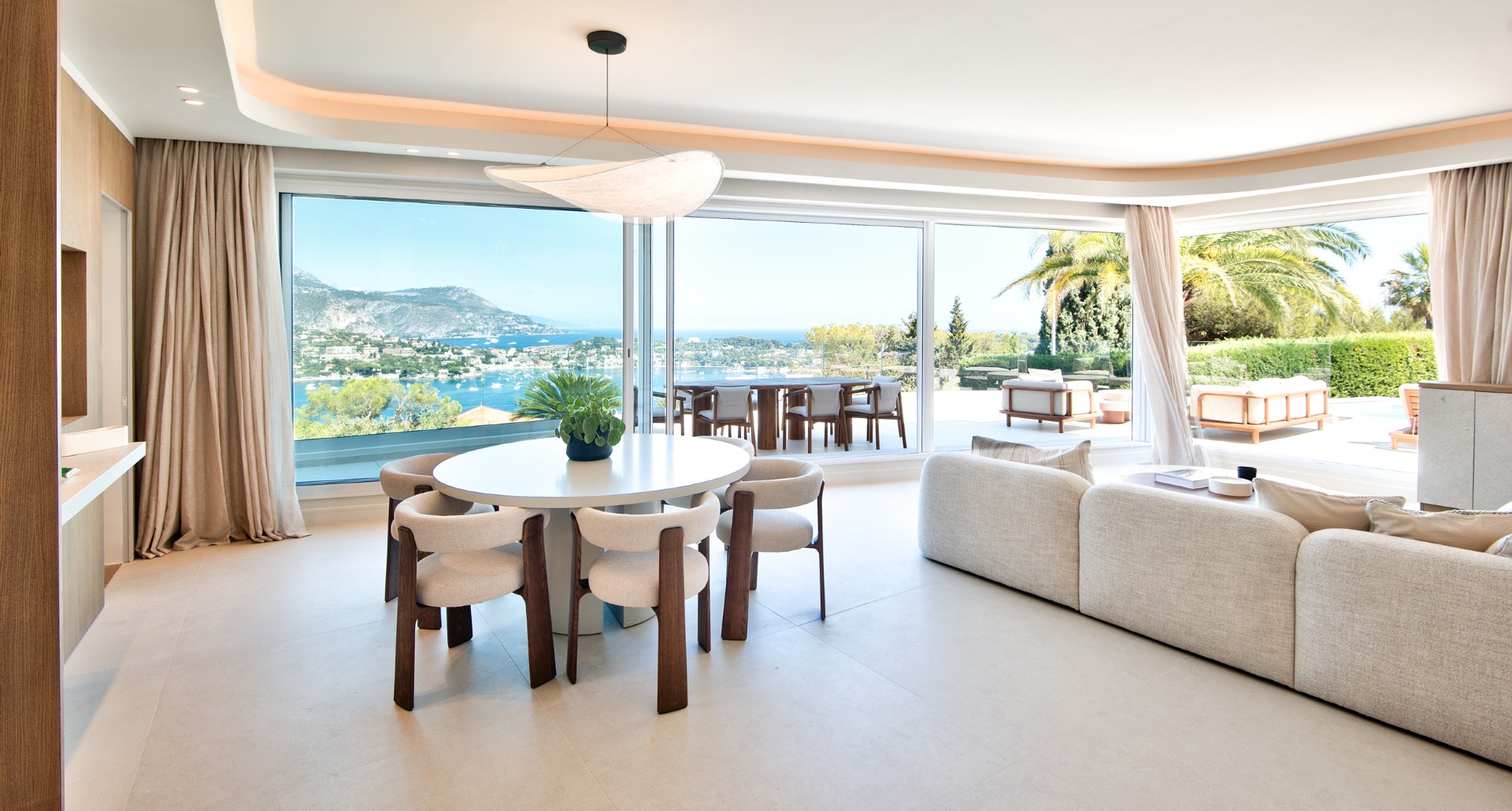 Sisääntulokerroksessa on tilava olohuone, korkeatasoinen keittiö, kaksi makuhuonetta omilla kylpyhuoneillaan sekä erillinen wc. Oleskelutiloista on käynti suurelle terassille ja uima-altaalle. Olohuoneesta aukeaa henkeä salpaavat näkymät Saint-Jean-Cap-Ferrat’n niemelle ja pitkälle merelle Monacon suuntaan.