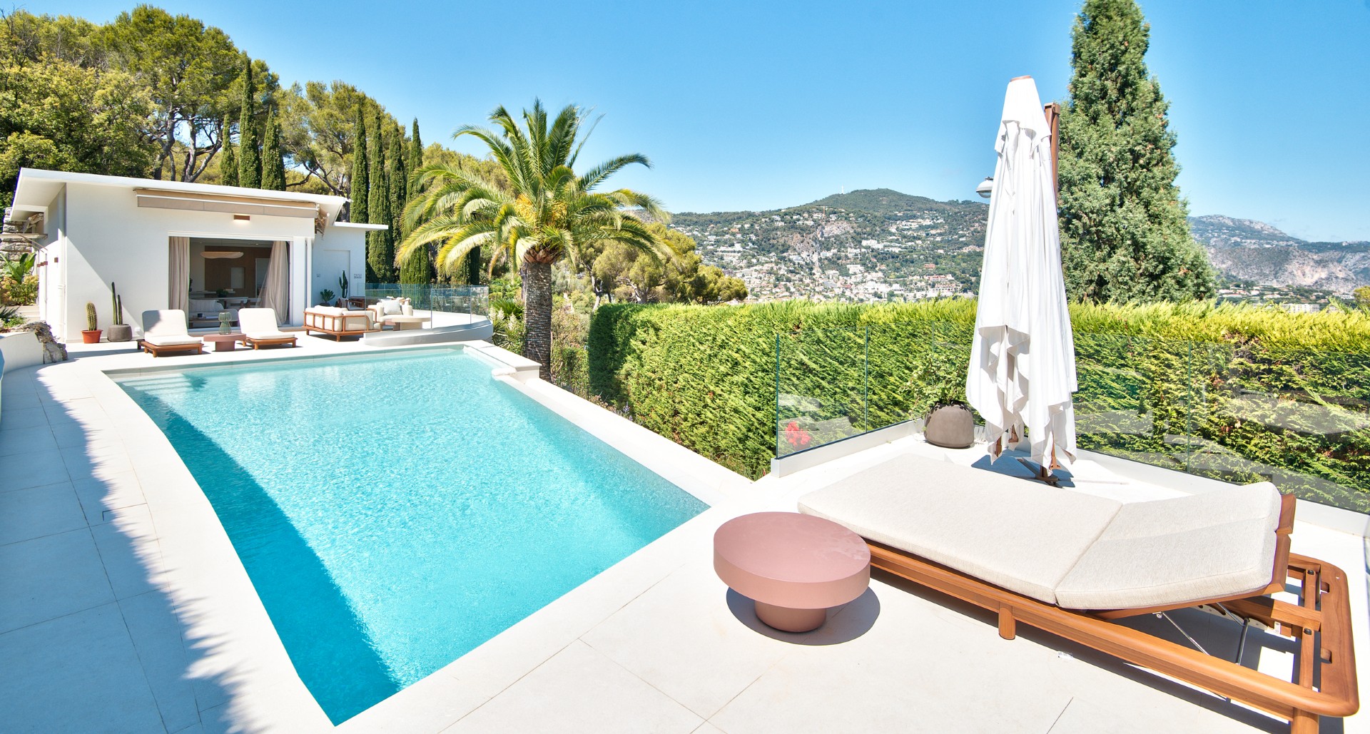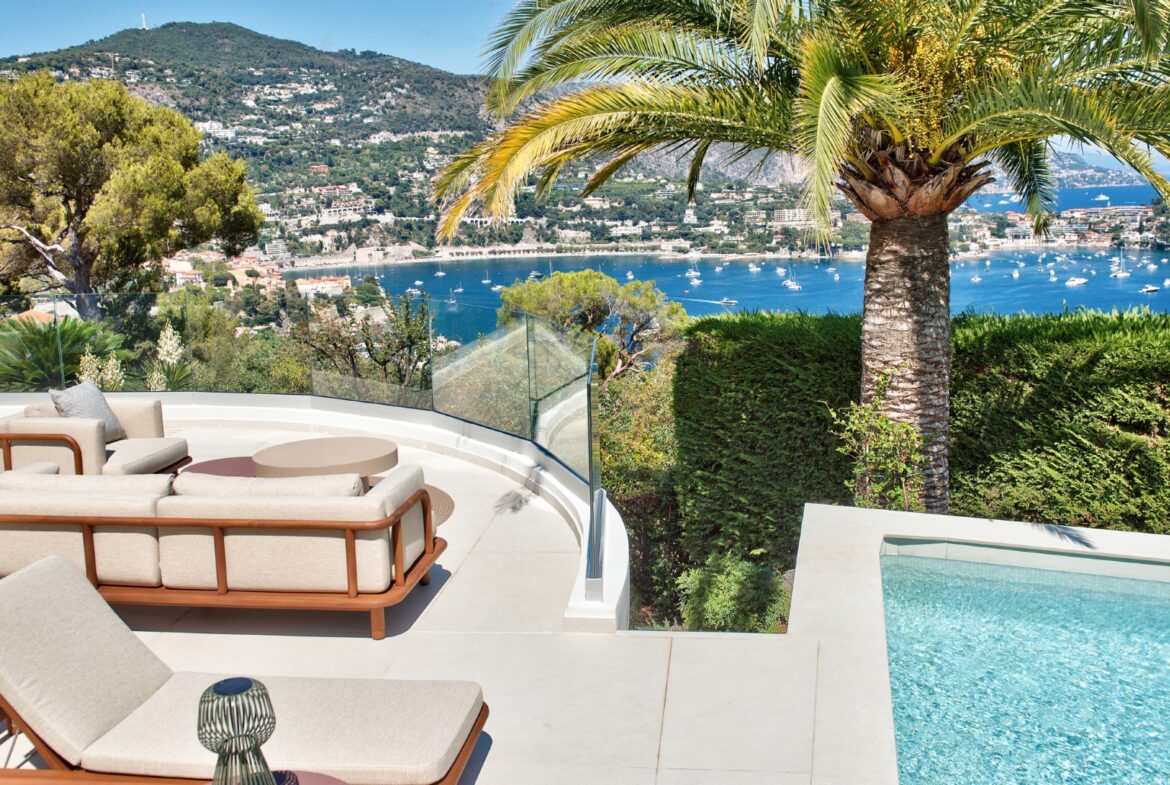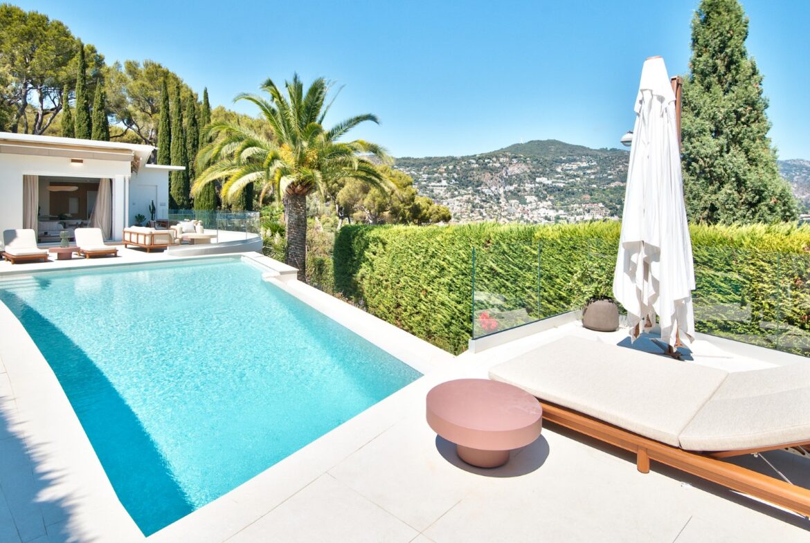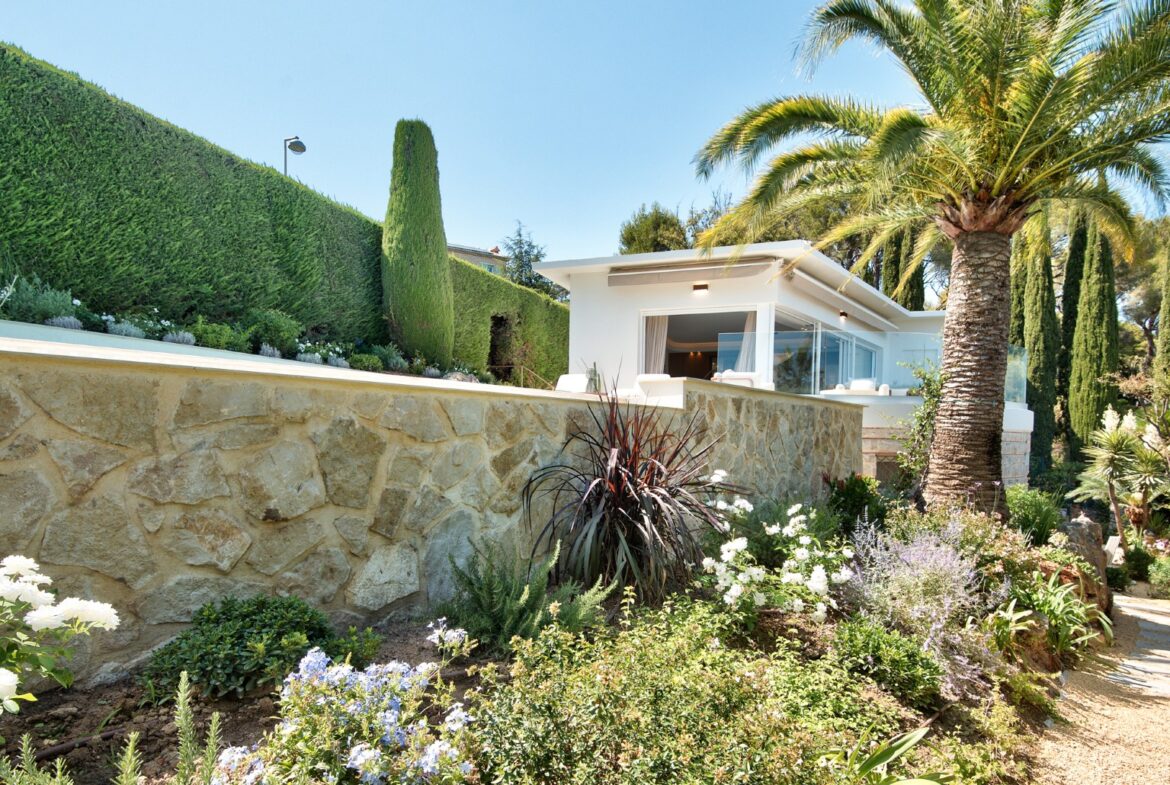 Nizzan Mont Boron’n arvoalueella sijaitseva, täysin remontoitu moderni huvila postikorttimaisemin, joka myydään kalustettuna ja valmiina asuttavaksi.