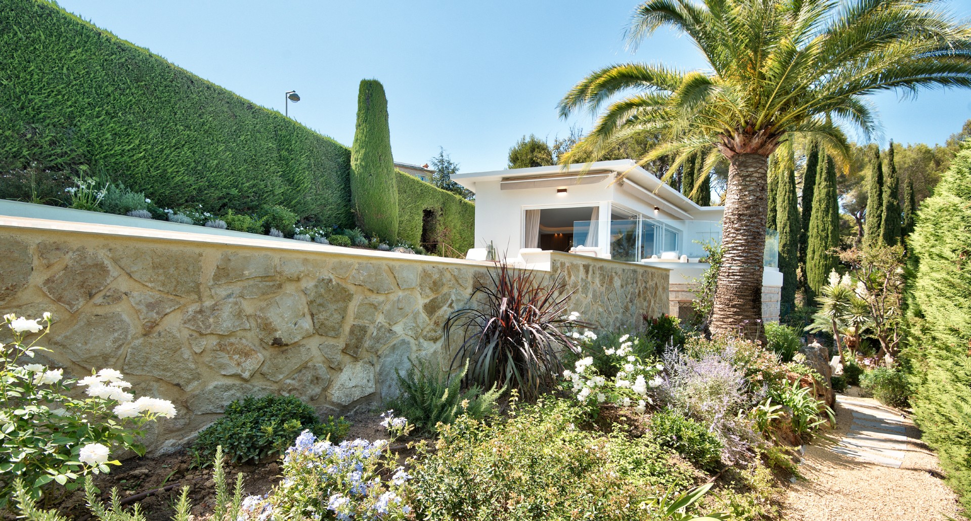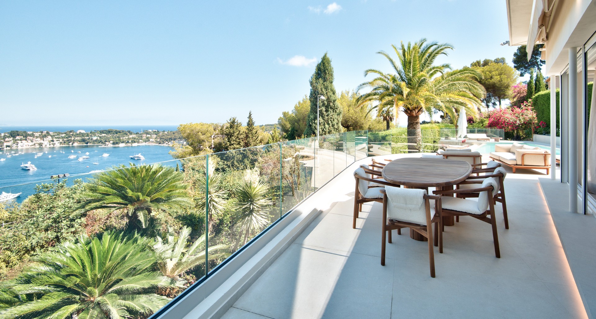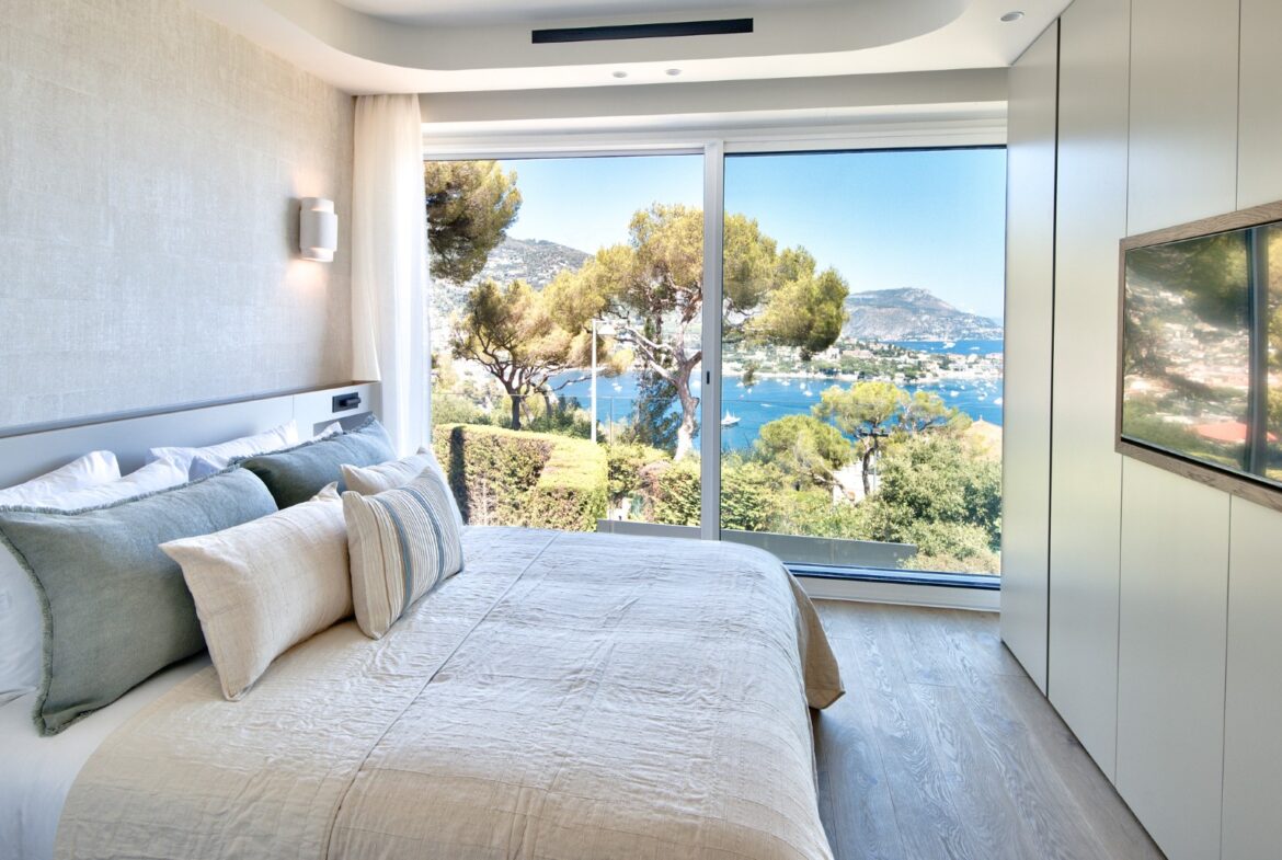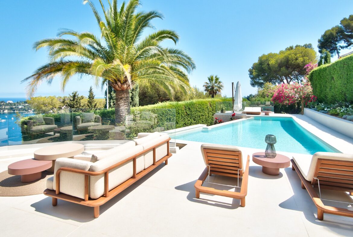Nizzan Mont Boron’n arvoalueella sijaitseva, täysin remontoitu moderni huvila postikorttimaisemin, joka myydään kalustettuna ja valmiina asuttavaksi.