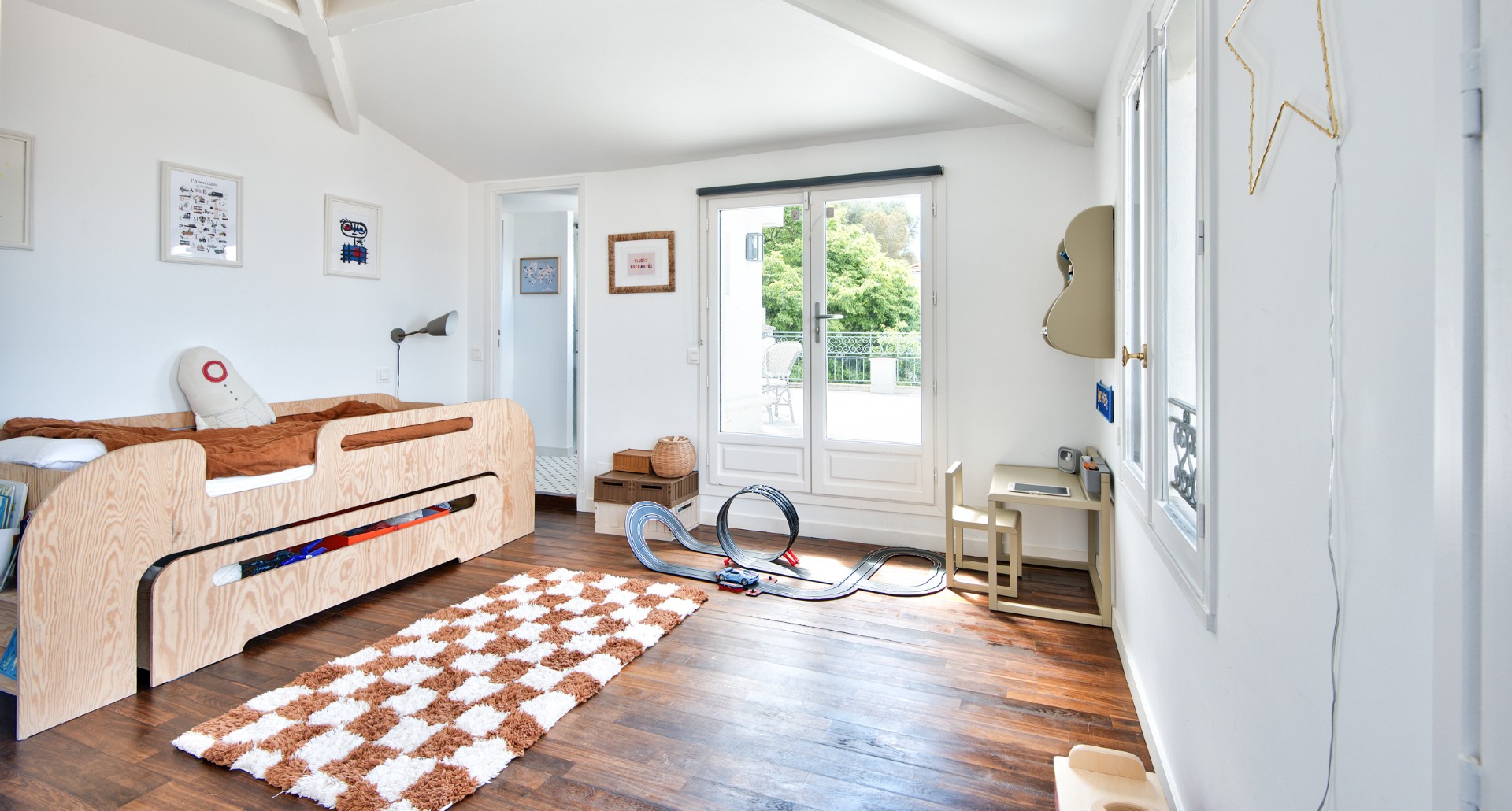 Lisäksi talolla on tilava autotalli ja ulkoparkkipaikka.