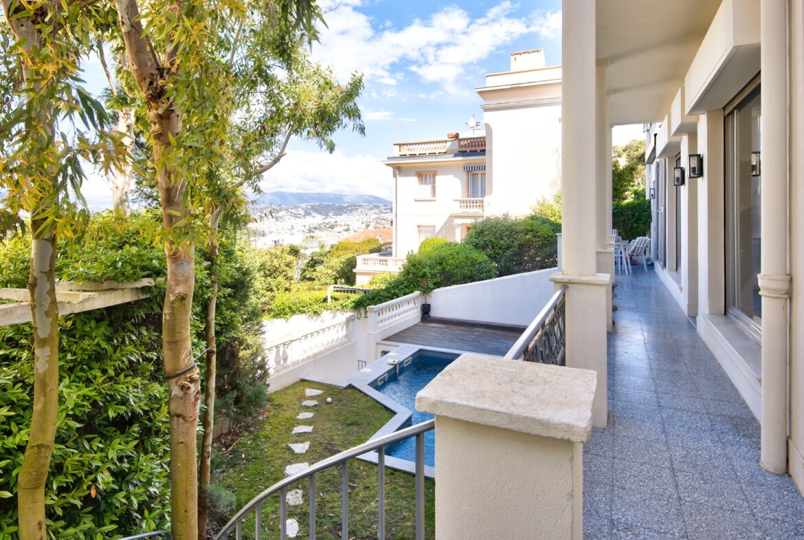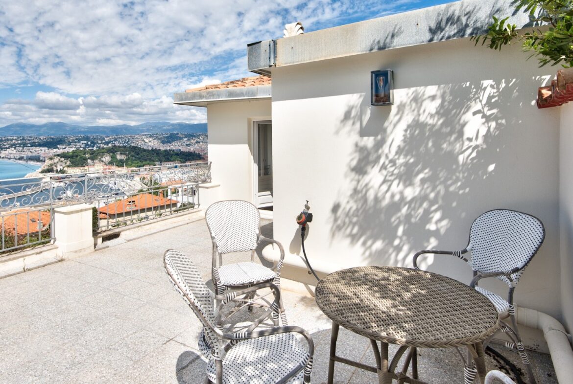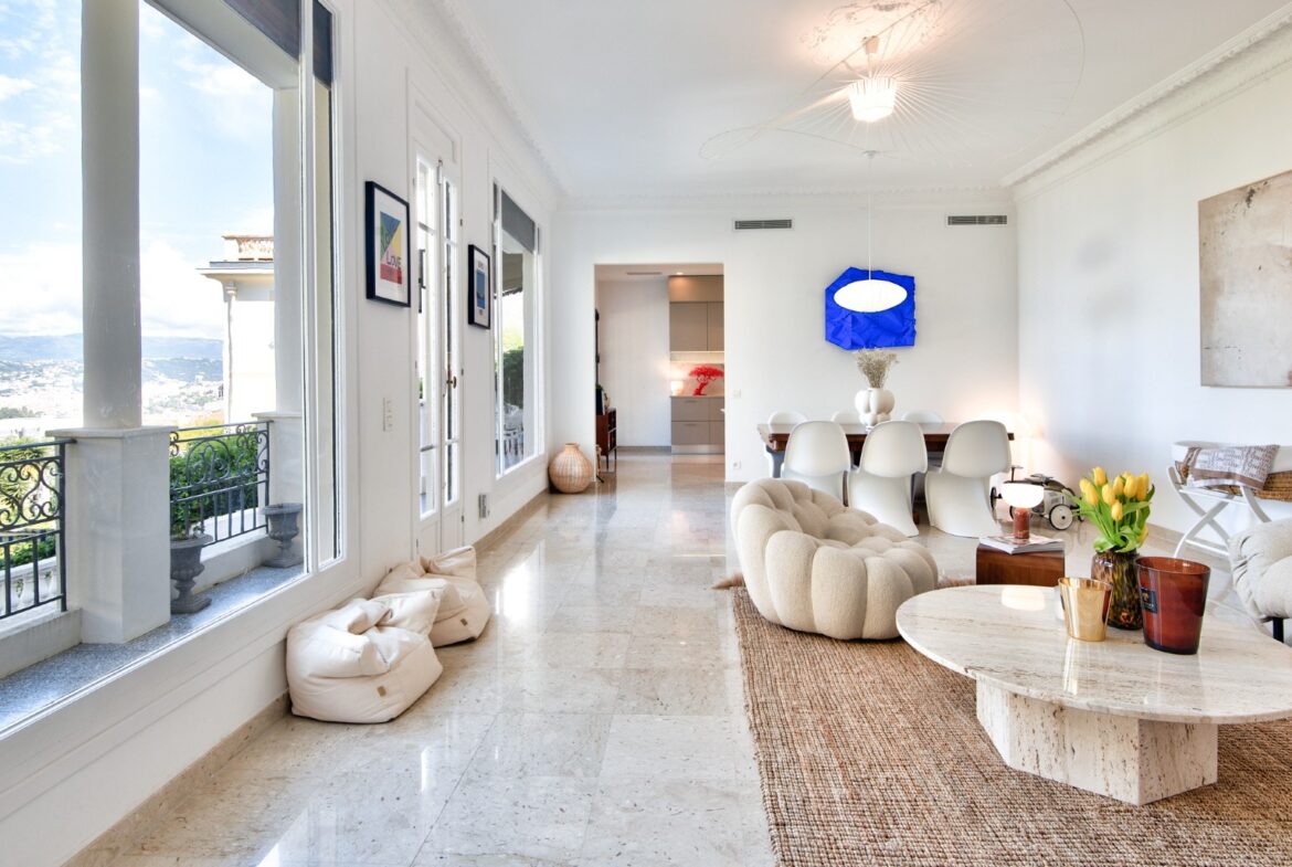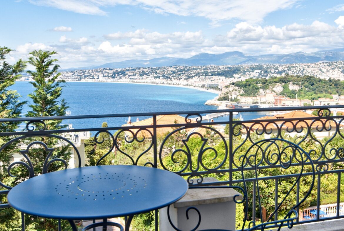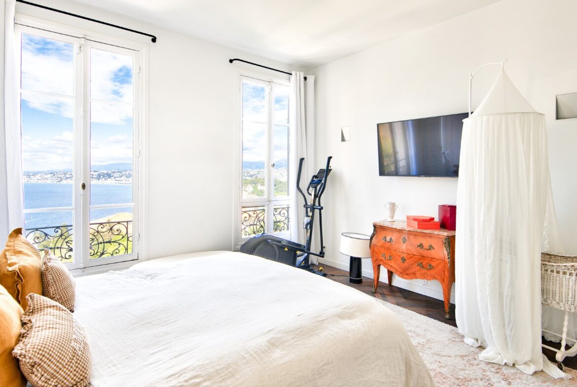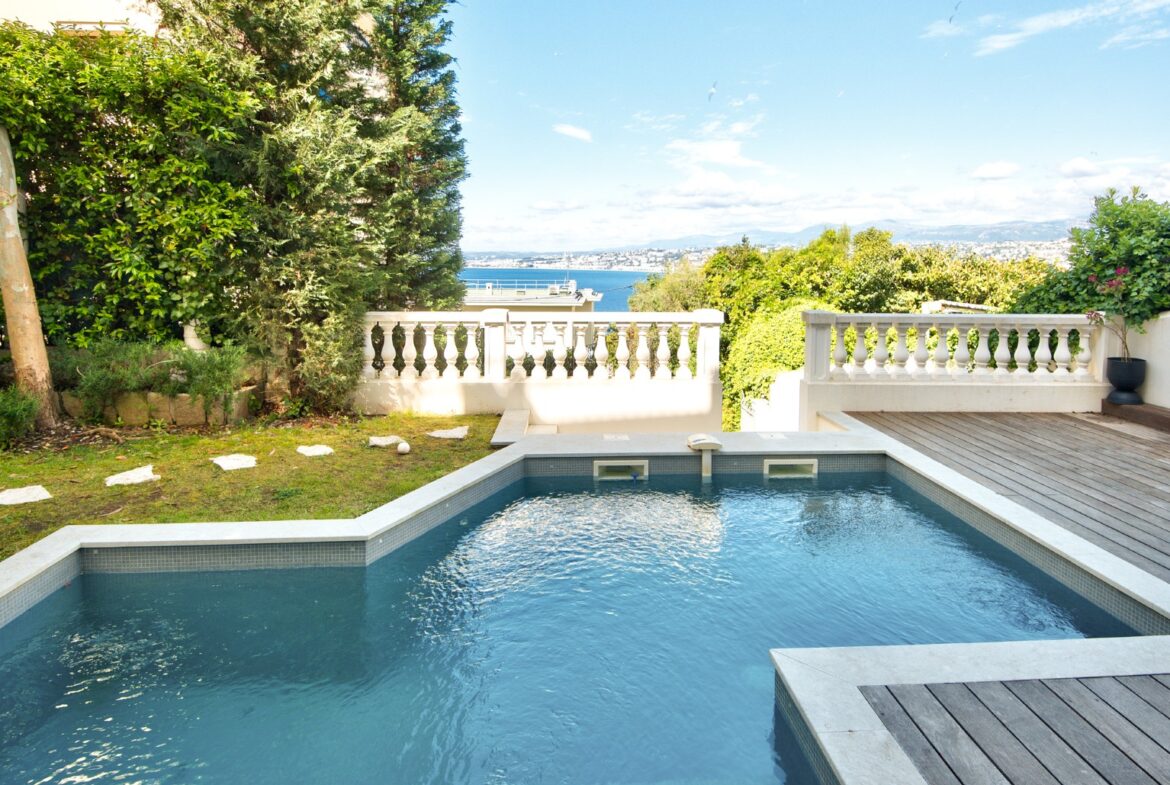 Nizzan Mont-Boronin parhaalla alueella, erittäin korkeatasoinen ja täysin remontoitu talo, j0lta aukeaa postikorttimaisemat Enkelten lahdelle.