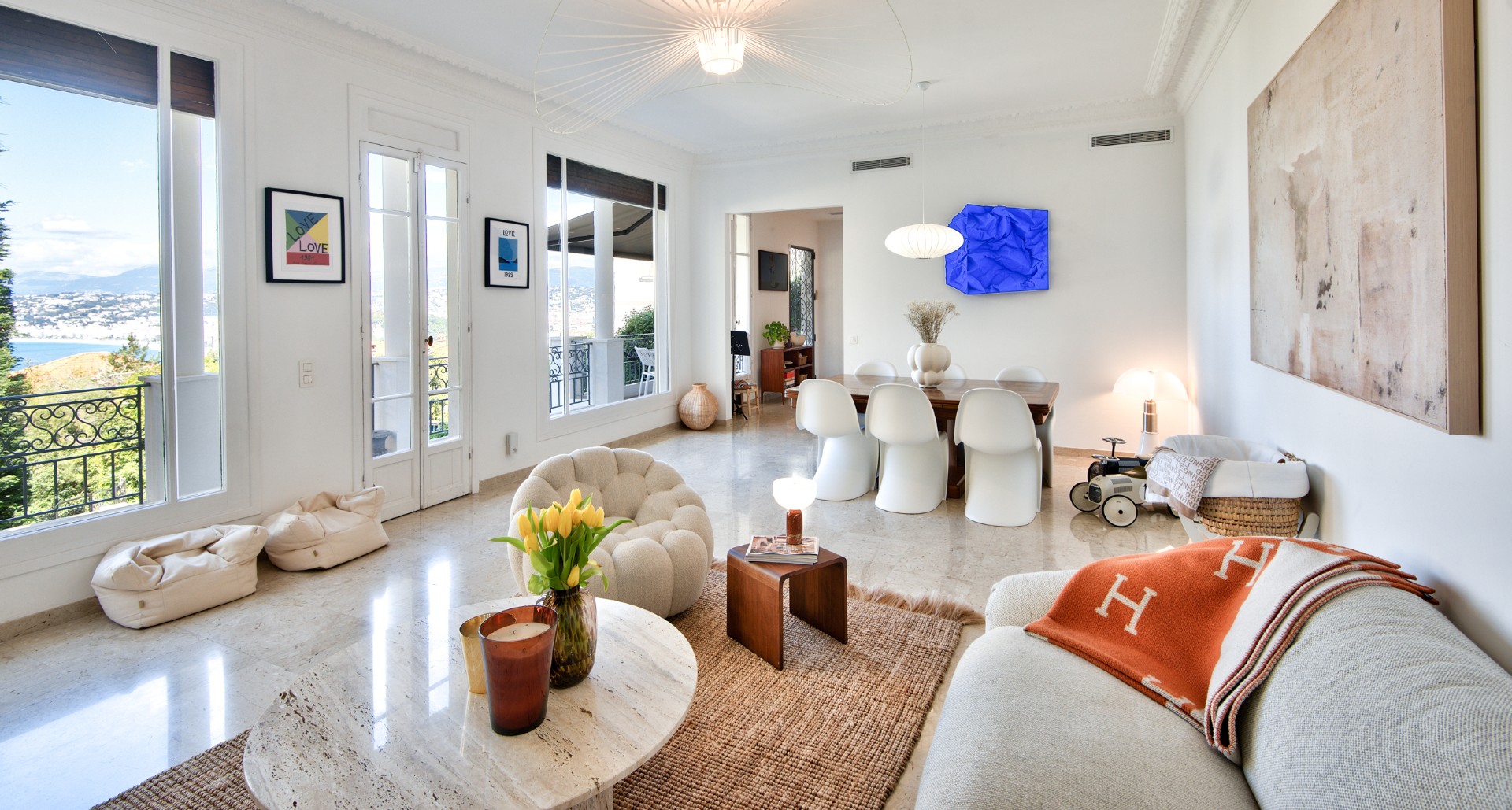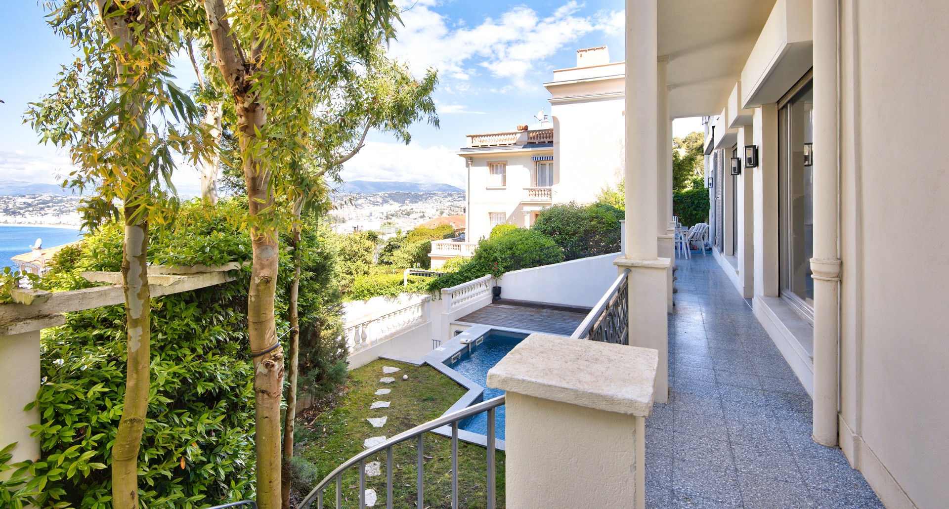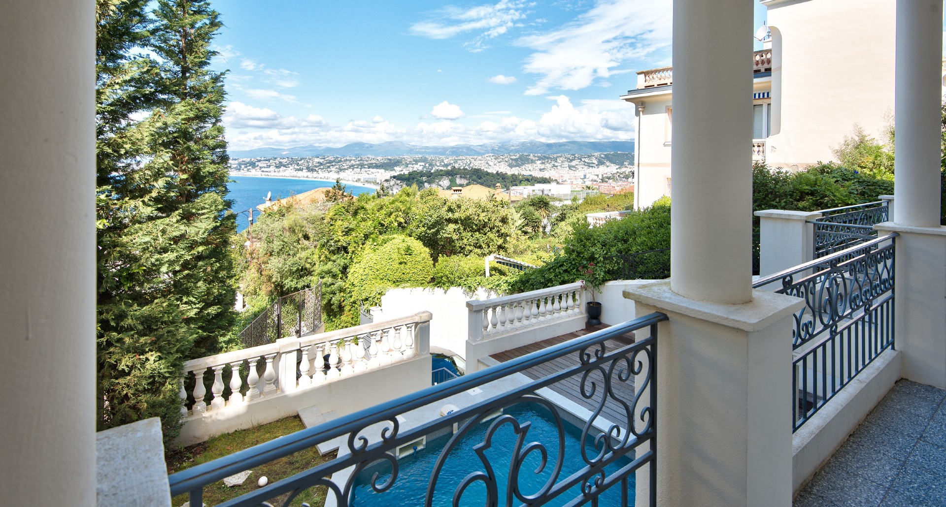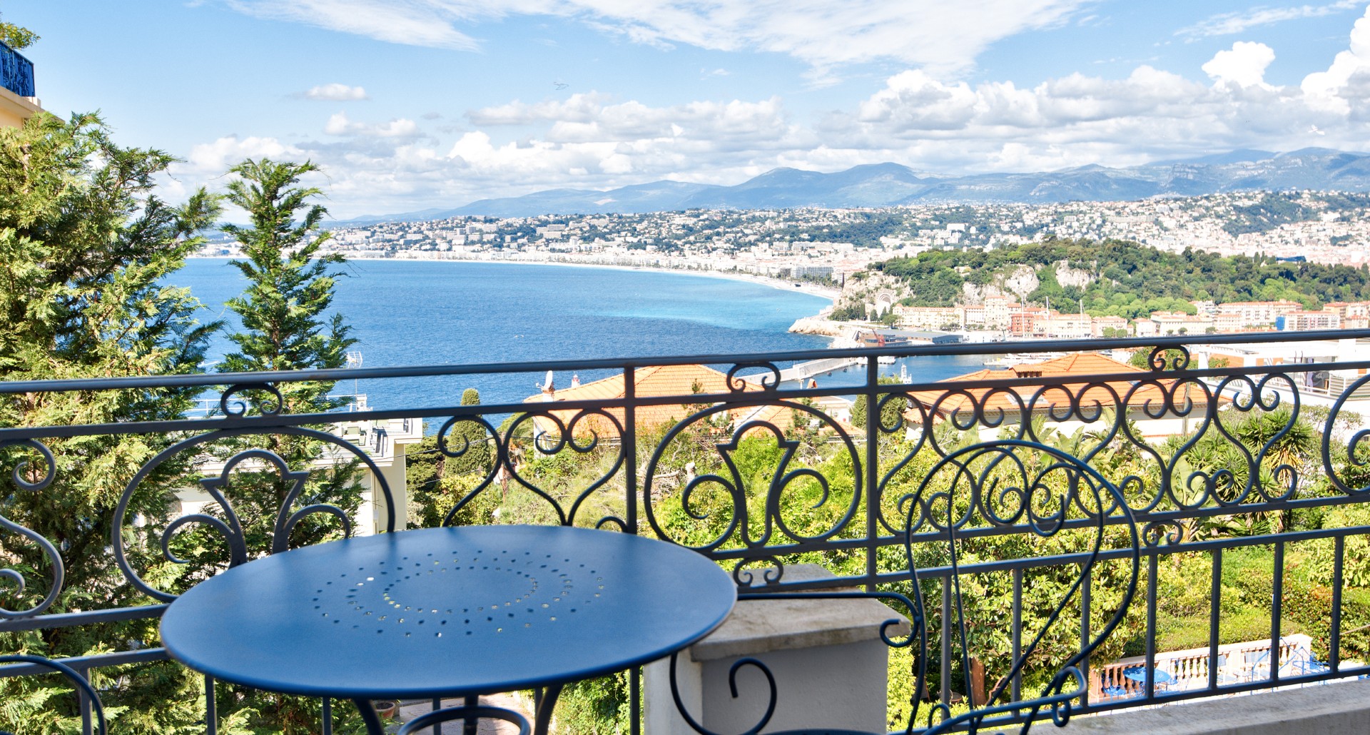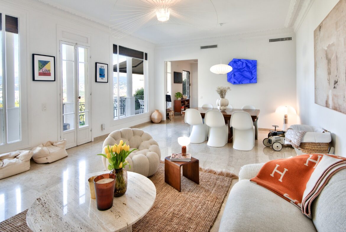 Nizzan Mont-Boronin parhaalla alueella, erittäin korkeatasoinen ja täysin remontoitu talo, j0lta aukeaa postikorttimaisemat Enkelten lahdelle.