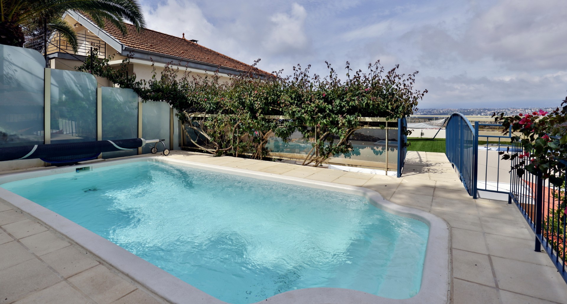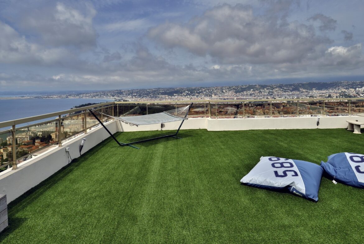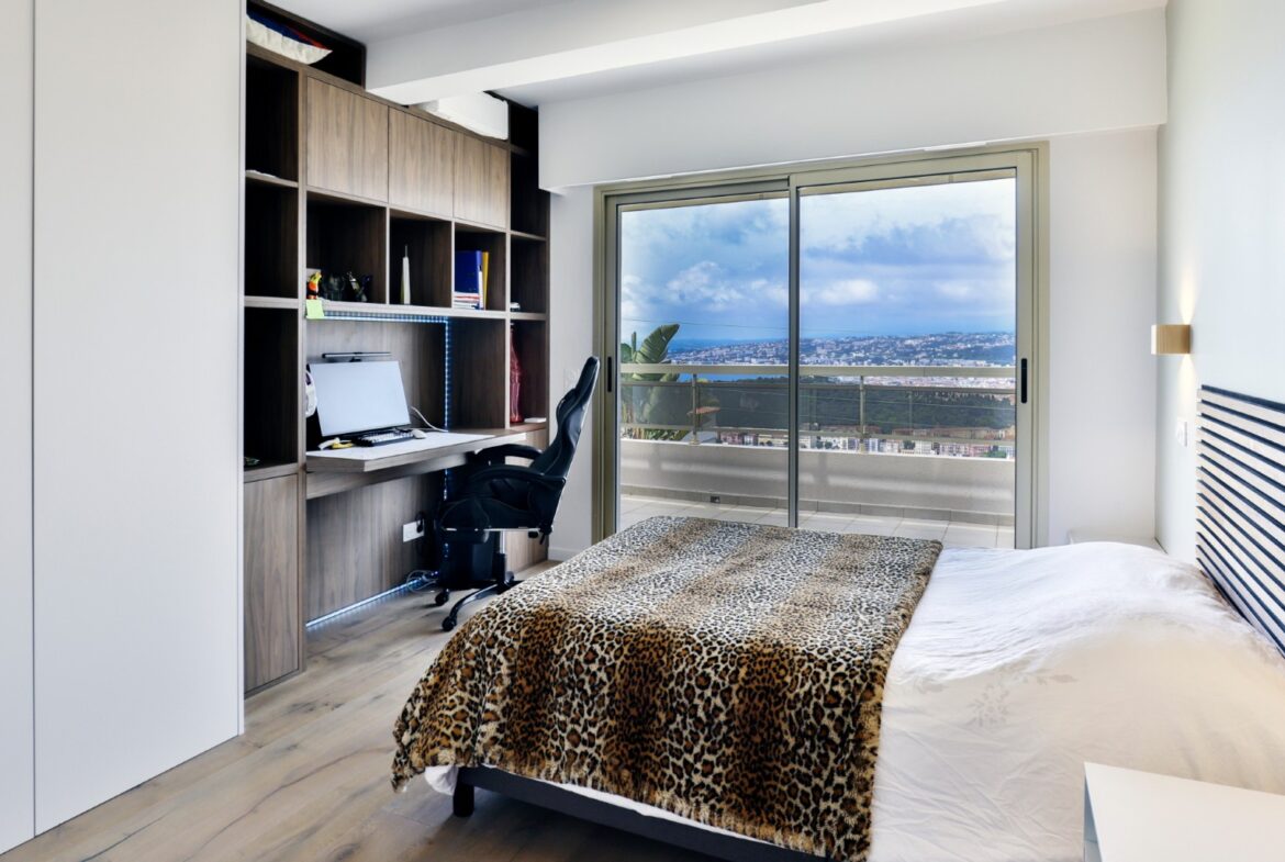 Monesta huoneesta aukeaa huikeat panoraamanäkymät merelle ja Nizzan kaupungin ylle. Talolta on suora käynti Mont-Boronin metsäiseen puistoon ja lyhyt ajomatka sataman ja keskustan kaikkien palveluiden pariin.