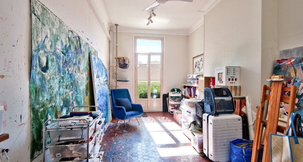 Asunnossa on tilava eteinen, valoisa olohuone avokeittiöllä, kaksi makuuhuonetta sekä kaksi kylpyhuonetta, jossa molemmissa wc:t. Olohuoneesta on käynti parvekkeelle, joka suuntautuu etelään. Paljon kauniita yksityiskohtia, kuten korkeat huoneet, kaksi takkaa ja provencelaista terrakottalattiaa. Asunto sijaitsee talon 4. kerroksessa (suomalaisittain 5. krs). Talossa ei ole hissiä. Asuntoon kuuluu kellarivarasto.