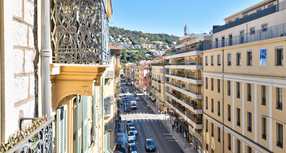 Nizzan sataman korttelissa, hyvin ylläpidetyssä nizzalaistyylisessä talossa sijaitseva, kauniisti remontoitu läpitalon asunto eteläisellä parvekkeella.