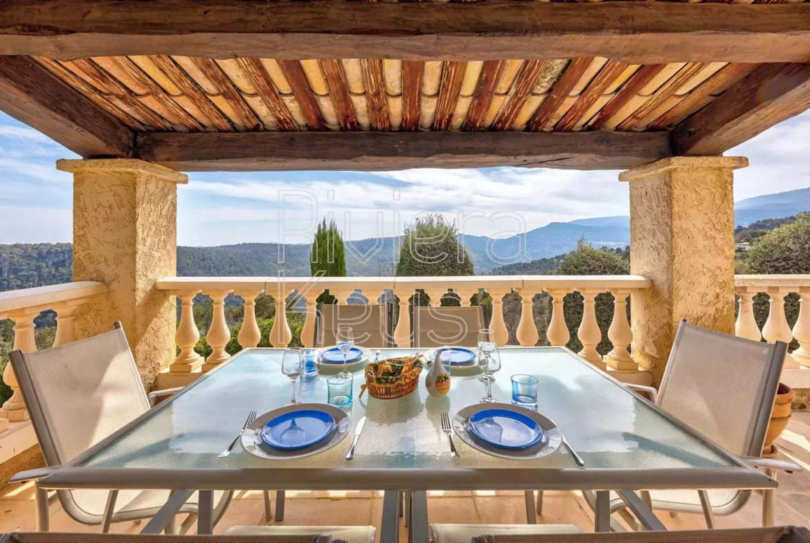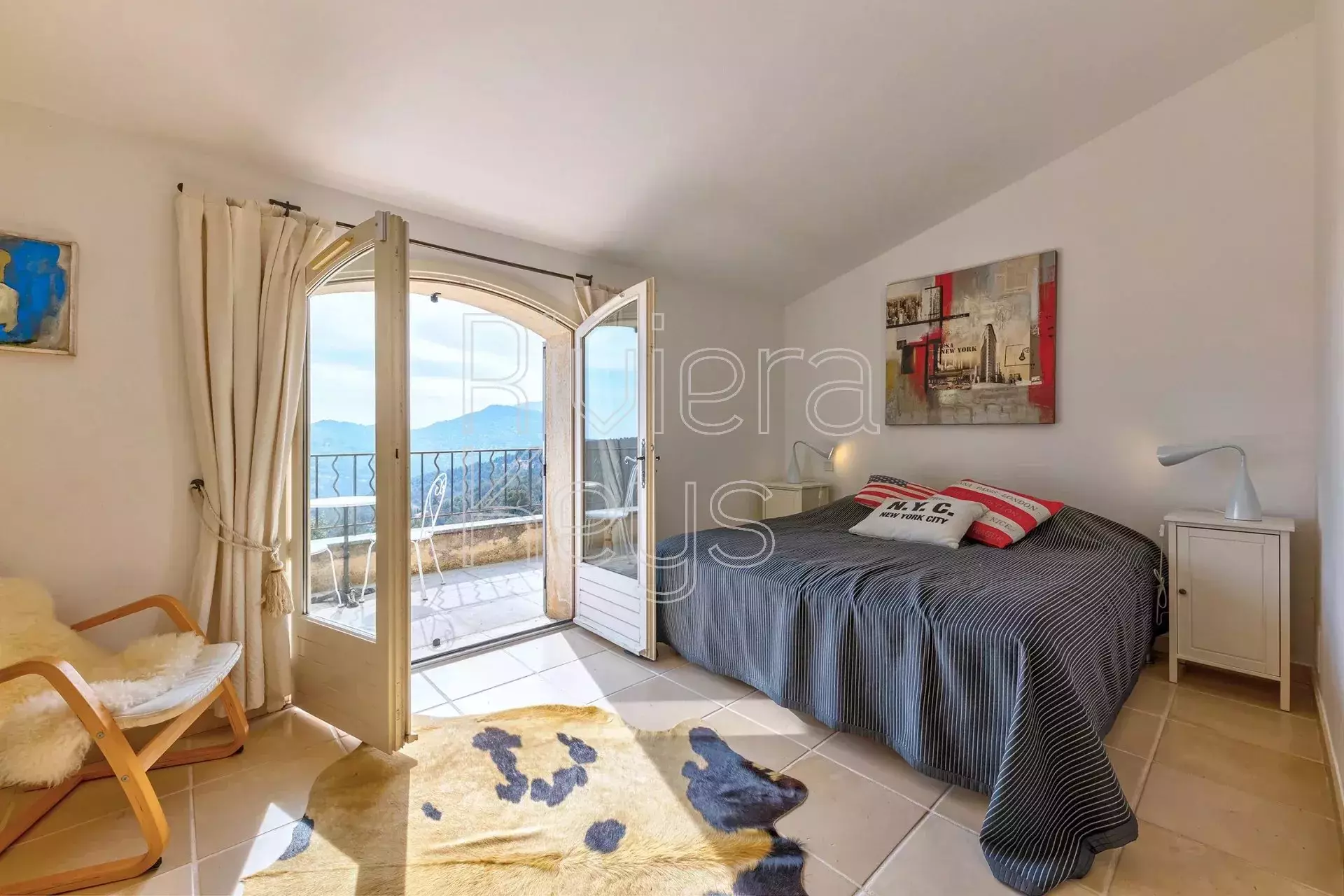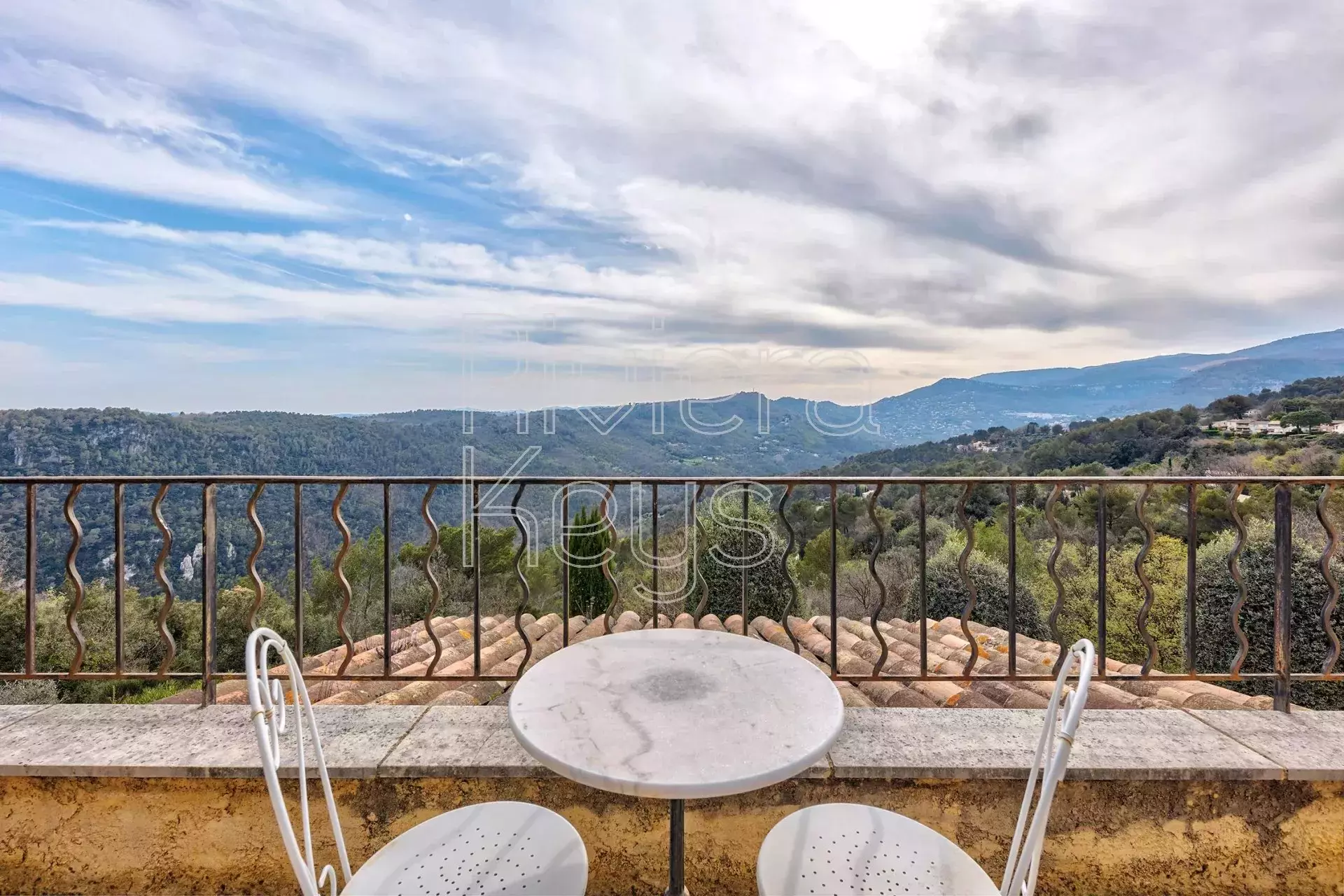 Tourrettes-sur-Loup’ssa, lyhyen ajomatkan päässä viehättävän, keskiaikaisen kylän palveluista sijaitseva talo, jolta aukeaa panoraamanäkymät merelle saakka.