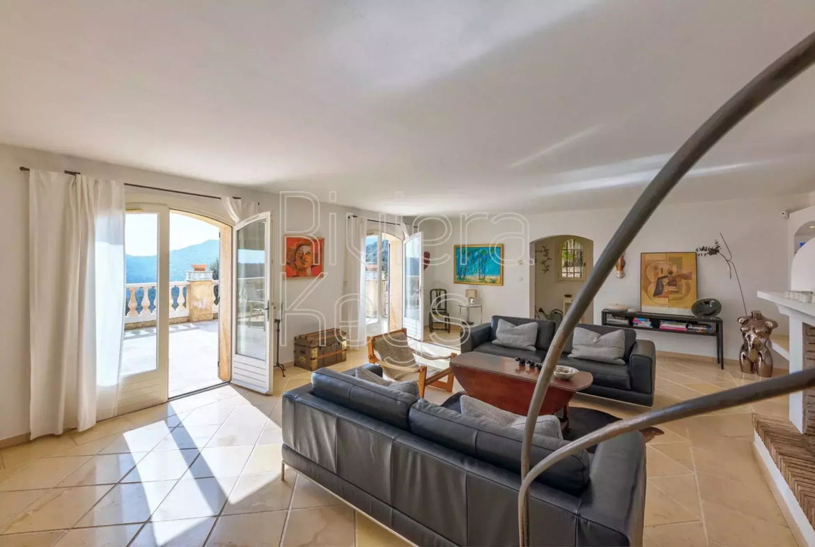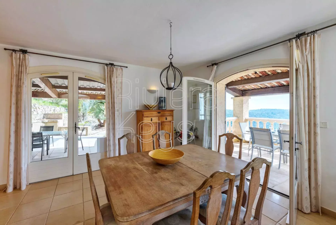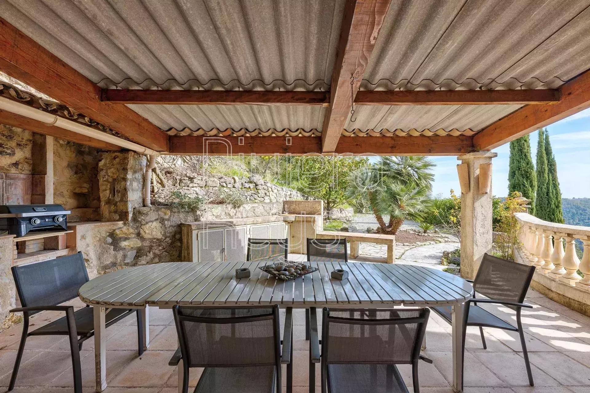 Tourrettes-sur-Loup’ssa, lyhyen ajomatkan päässä viehättävän, keskiaikaisen kylän palveluista sijaitseva talo, jolta aukeaa panoraamanäkymät merelle saakka.