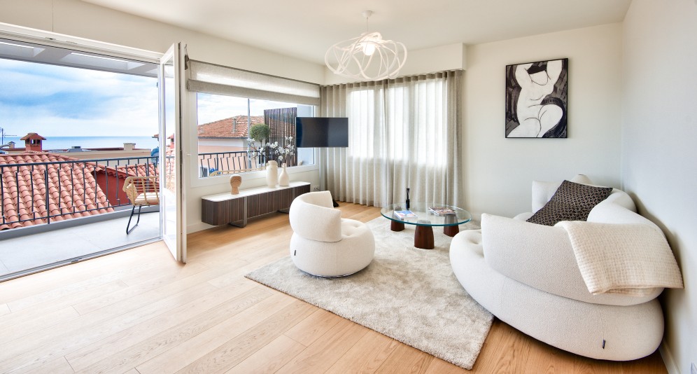Villefranche-sur-Mer’n keskustassa, pienen taloyhtiön ylimmässä kerroksessa sijaitseva, täysin remontoitu asunto, jolta aukeaa postikorttimaisemat merelle ja Saint-Jean-Cap-Ferrat’lle.